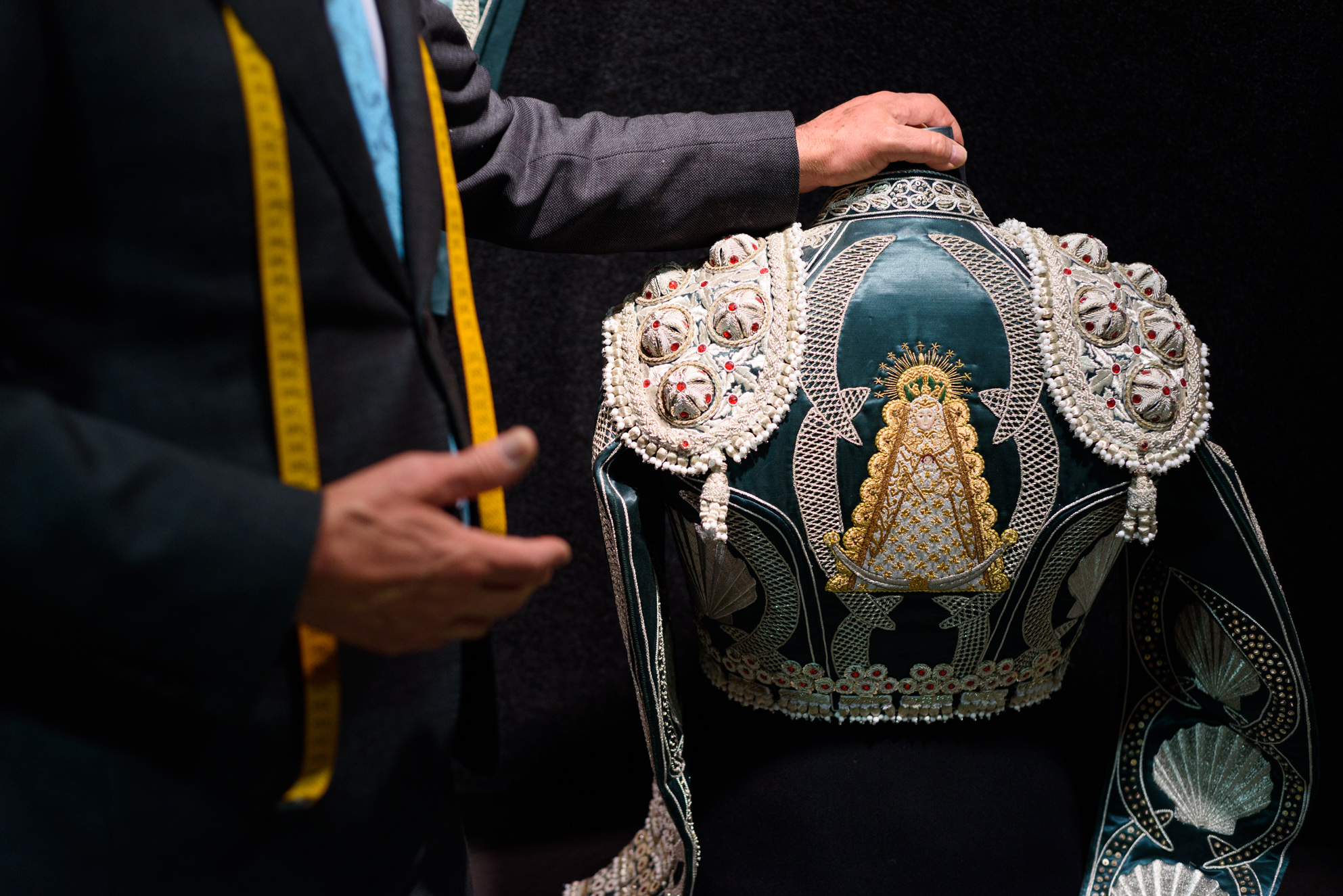 JA: La ropa de torear es una ropa muy laboriosa. Es una ropa que se lleva muchas horas. Un vestido no se tarda menos de mes y medio. El vestido que sacó Morante el primer día de Vistalegre se han tardado en hacerlo tres meses con cincuenta personas trabajando. Eso es antieconómico. Yo no le puedo cobrar a ese hombre lo que me cuesta. ¿Has perdido dinero? Bueno, hay vestidos que se subvencionan unos a otros. Haces una compensación. Generalmente un vestido se tarda mes y medio, cincuenta personas trabajando y mínimo ocho horas diarias.