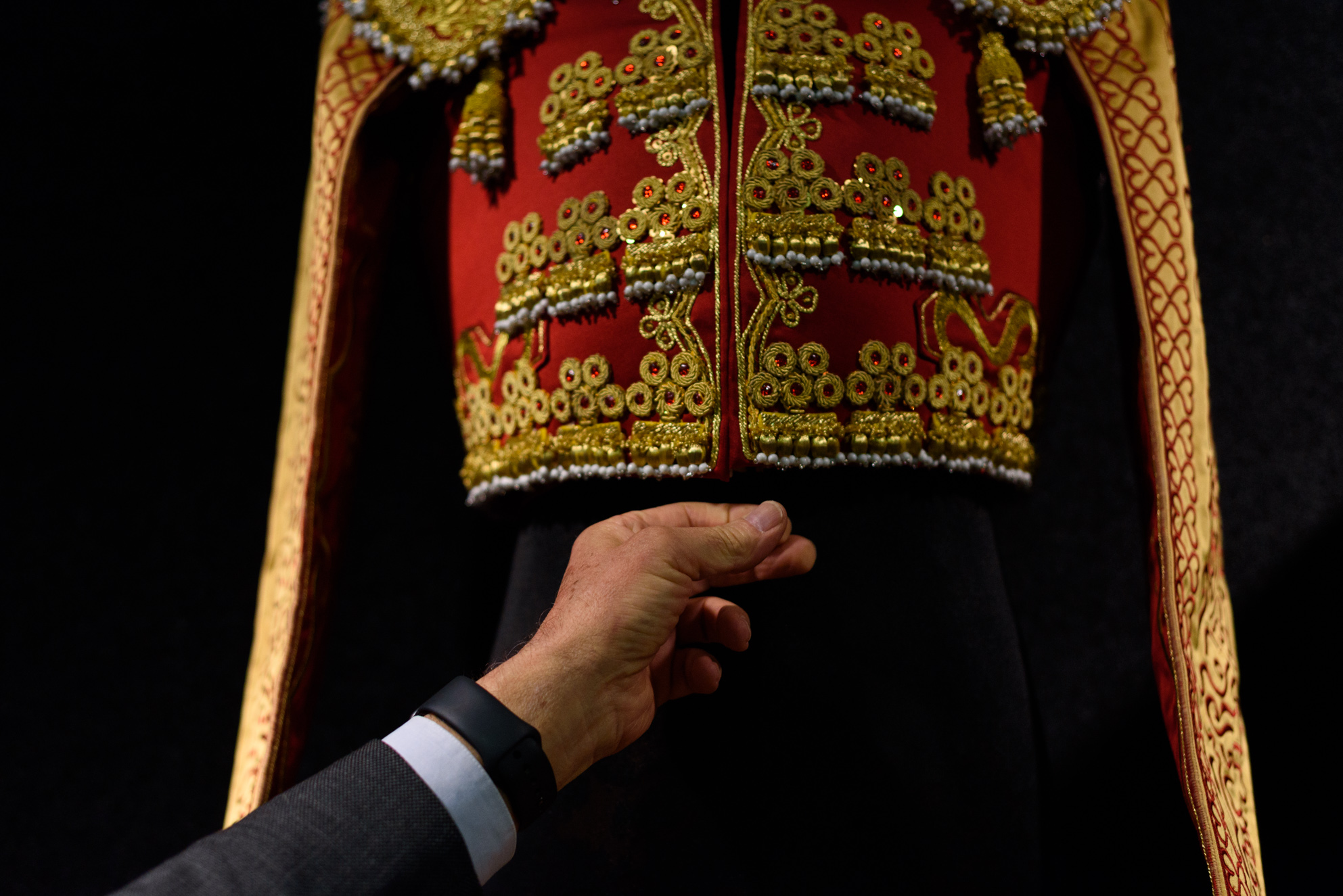 JA: Un torero si no es caprichoso, si no tiene un grado de coquetería en su vestuario, podríamos considerar que la ropa que utiliza para torear es una ropa más. No, el torero cuando va a comprarse una ropa de vestir, un vaquero o unas camisas va de cualquier manera, no le importa, incluso si lleva una mancha o el pantalón está roto. Pero cuando él quiere vestirse las cosas cambian. Se transforma y el vestido de luces cumple un cometido que es totalmente distinto. Tanto para el que lo ve como para el que se lo pone.