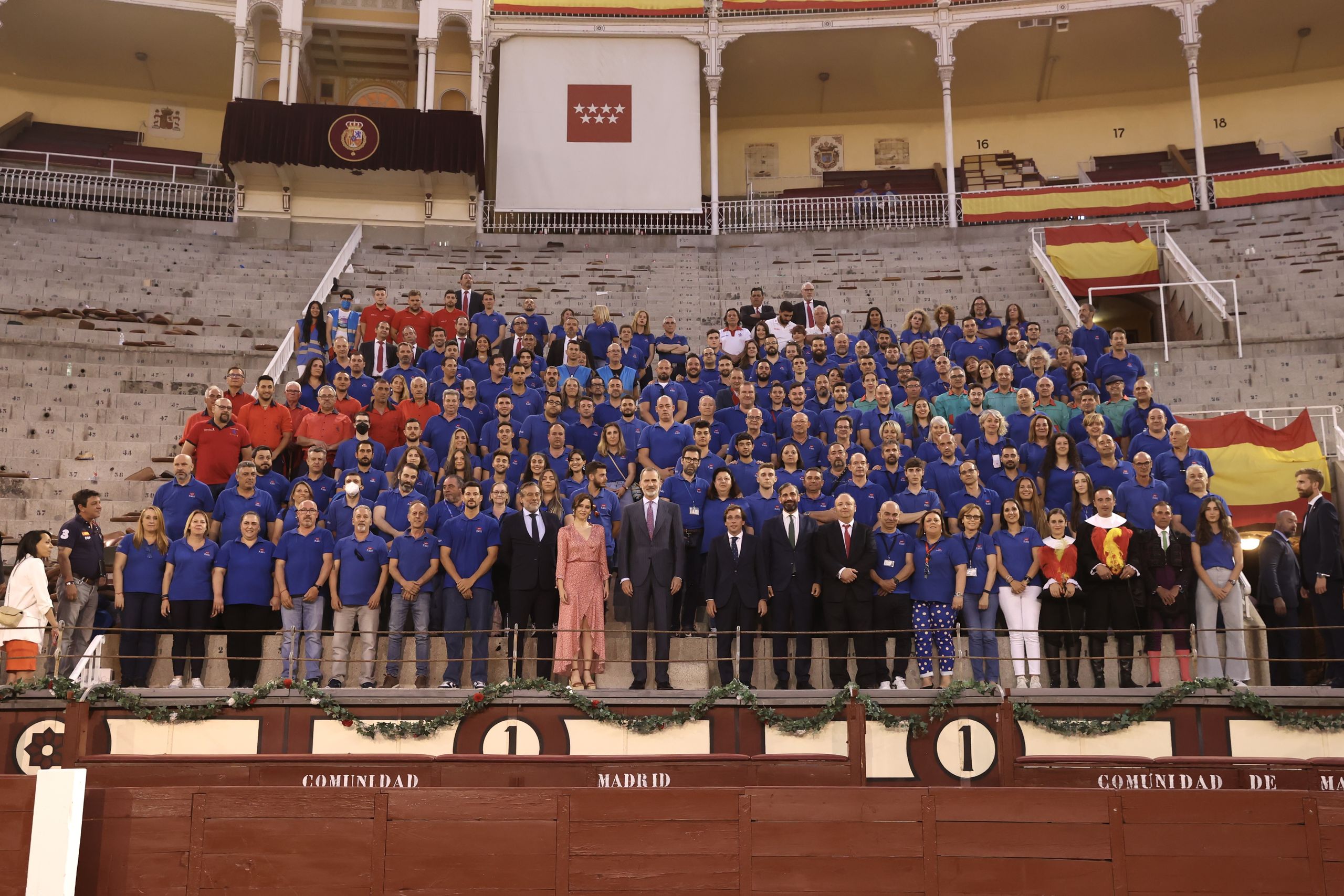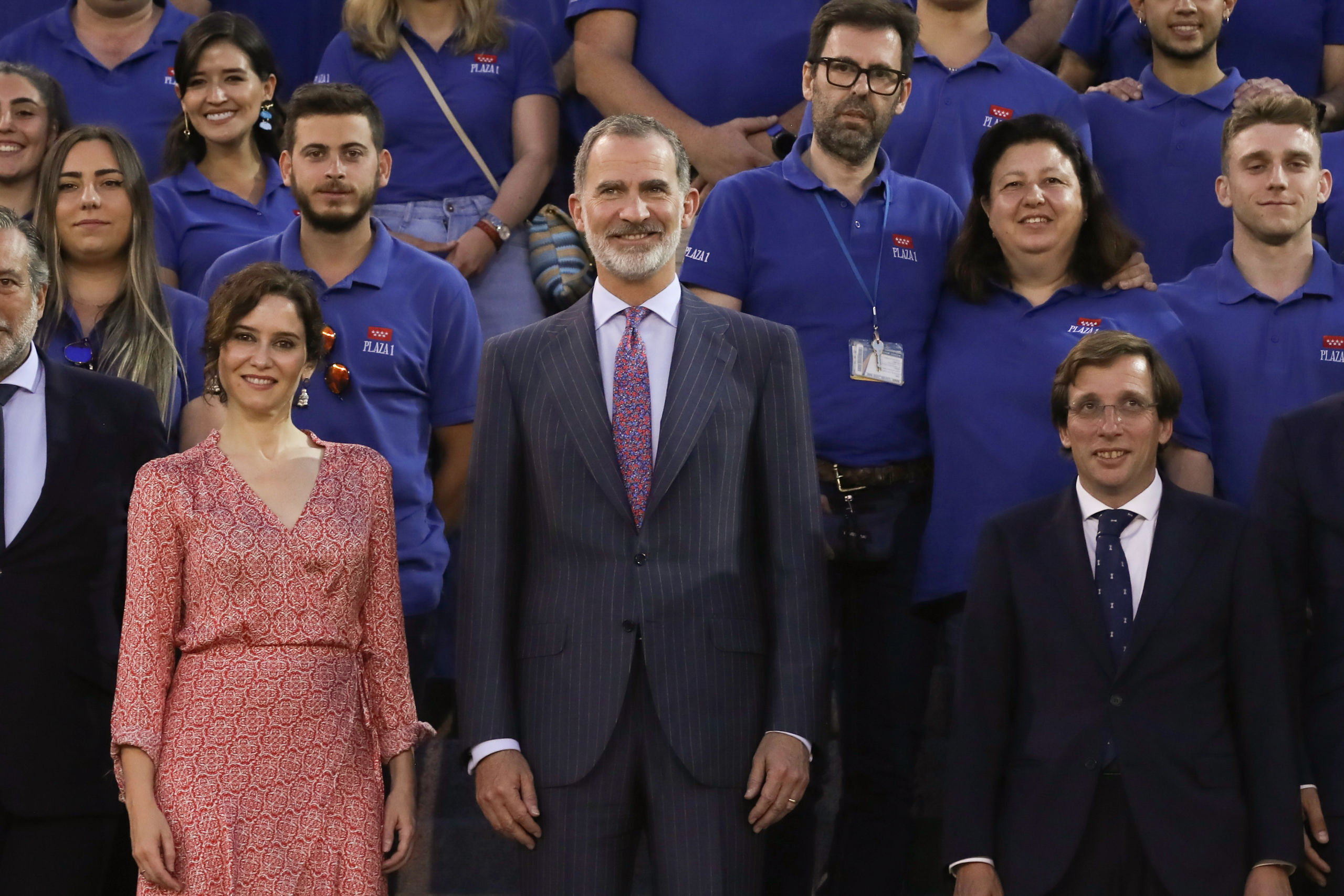 Tras la corrida, Felipe VI, Isabel Díaz Ayuso y José Luis Martínez Almeida se han fotografiado con los empleados de Las Ventas.