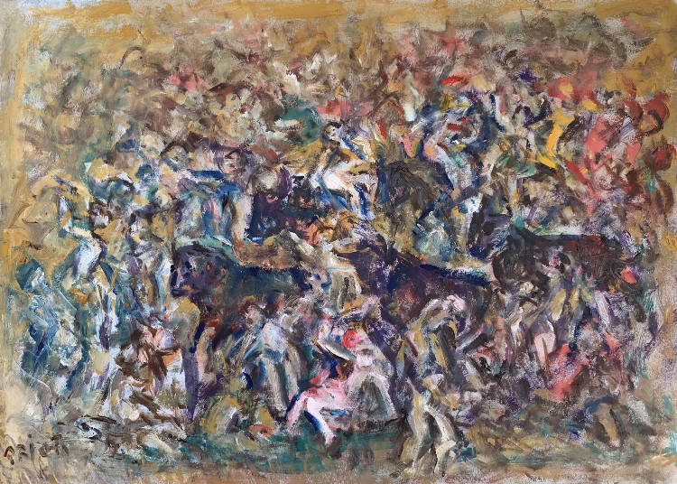 Pero, dejemos en su ensimismamiento a la confusa mediadora, y alabemos la consecuencia de su dudosa y, seguramente, errática conducta. Sí, espoleado por el suceso de los carteles, o sea, por unas míseras "gracias", Prior ha pintado tres obras magistrales dedicadas a los festejos taurinos en honor de San Fermín. Ahí están en las redes sociales para educación del gusto artístico los dos ensayos de cartel taurino y las tres joyas pictóricas. ¡Con cuánto amor y emoción dirijo mi mirada a la obra de un artista que, a punto de cumplir noventa años, sigue creando con la misma vitalidad de su juventud! Fresca, nueva y sin afeites cosméticos es toda la obra de Prior. Han desaparecido por completos los amaneramientos realistas. La sencillez y la naturalidad, supremo y último fin de toda gran cultura, determinan la creación de Prior: él rara vez pinta lo que ve; eso queda para la "pintura" realista, hoy ya casi muerta, o al servicio de la fotografía. Él ve, sí, únicamente lo que pinta. Es un creador. Está en la cumbre de la montaña de la pintura española. Quienes por allí habitan, saben bien de lo que hablo.