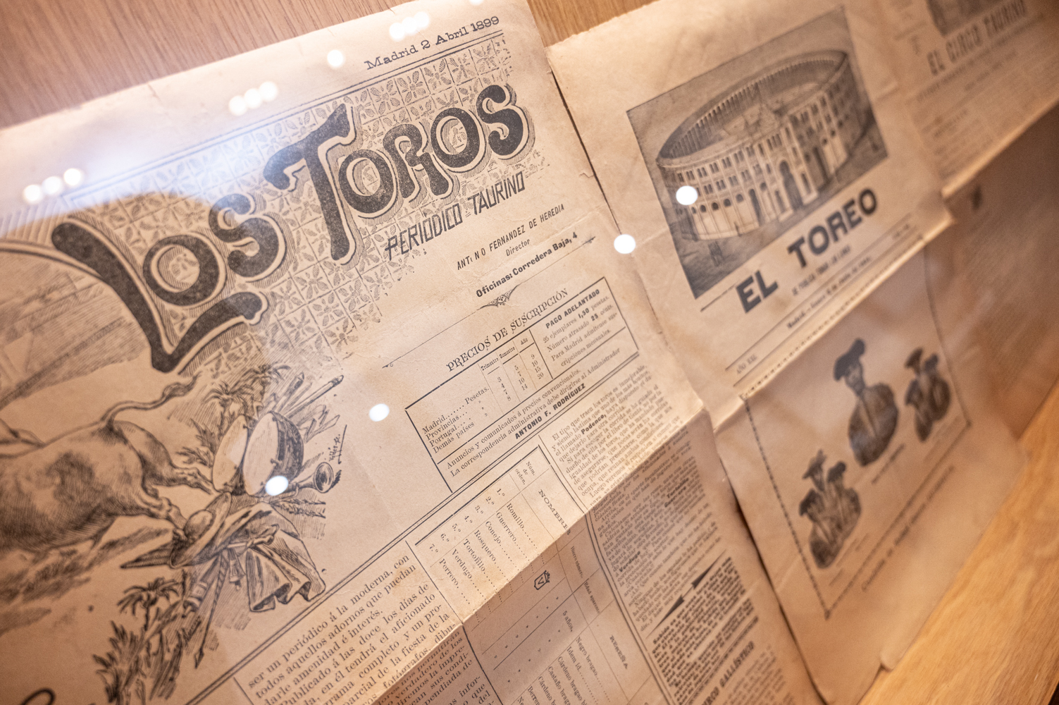 Como muestra de la colección que tienen en la principal plaza de toros del mundo y llevarnos al almacén al que sólo pueden acceder los responsables nos enseña algunos objetos. "Tengo expuesto un libro de cromos, que debe ser de principios del XX o finales del XIX por la estética. Hay sellos, abanicos, aleluyas, que parecen cómics. Esto da para mucho", señala.