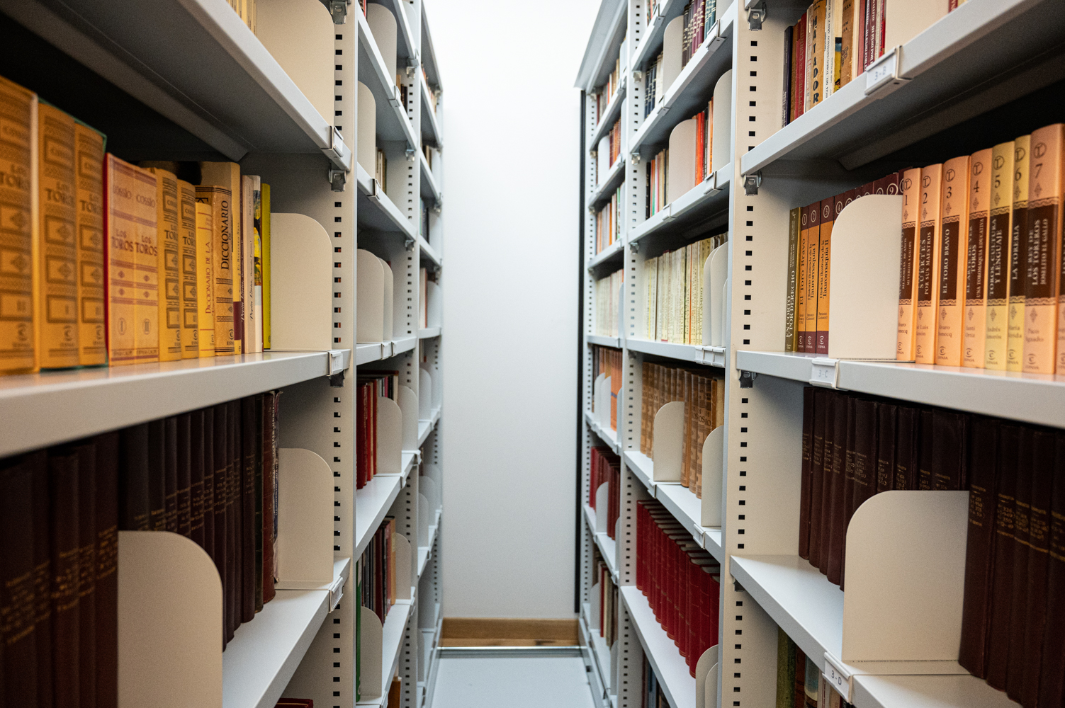 La colección de Antonio Briones, ganadero del histórico hierro de Carriquiri, uno de los más antiguos de España, de origen navarro, estaba antes en una oficina en un edificio de la calle Génova de Madrid, justo al lado de la sede del PP. La bibliotecaria explica que en su traslado a la Monumental "se ha respetado la ordenación que estaba en su antigua ubicación".