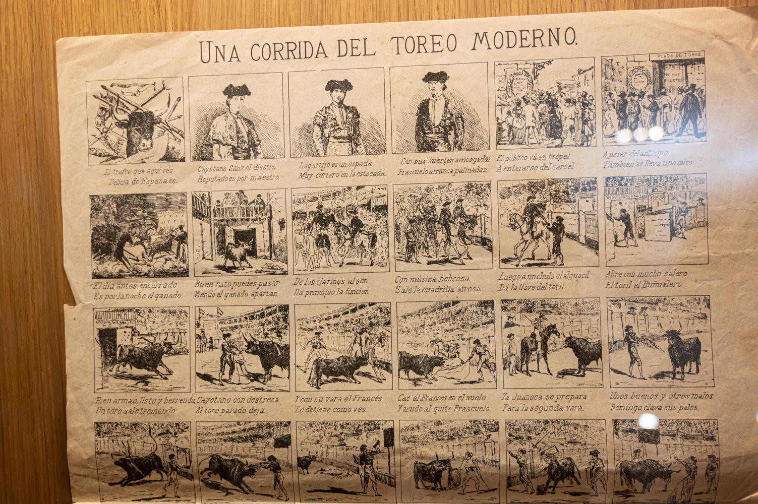 Como muestra de la colección que tienen en la principal plaza de toros del mundo y llevarnos al almacén al que sólo pueden acceder los responsables nos enseña algunos objetos. "Tengo expuesto un libro de cromos, que debe ser de principios del XX o finales del XIX por la estética. Hay sellos, abanicos, aleluyas que parecen cómics. Esto da para mucho", señala.