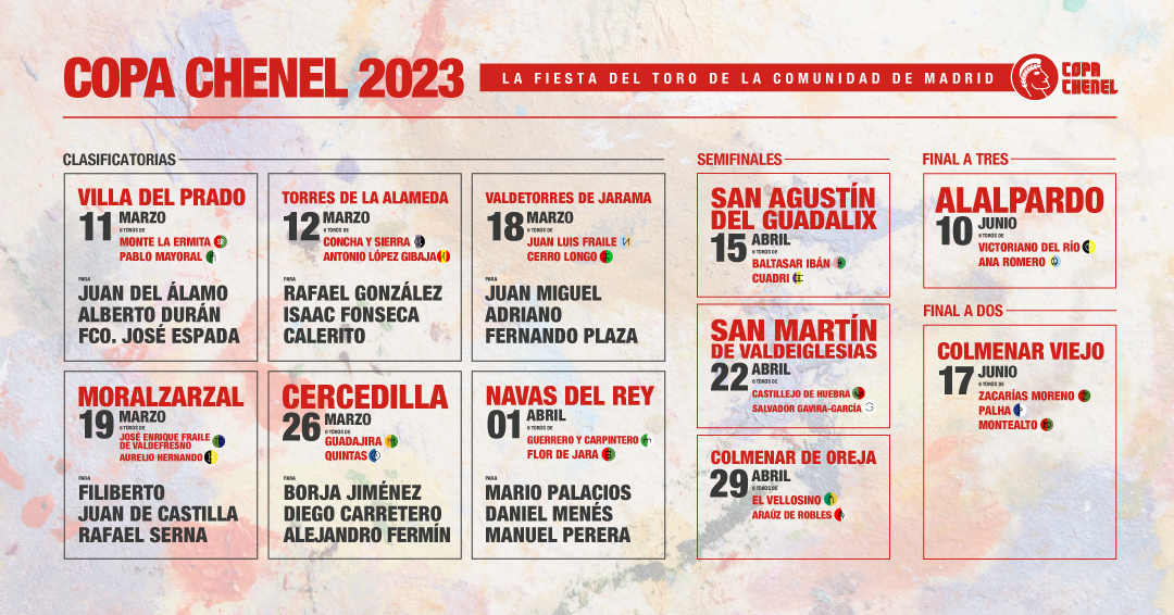 El sorteo, celebrado con gran expectación, que han realizado los periodistas Carmelo López y Javier F. Mardomingo ha dejado 6 corridas de toros en la primera fase con mucho interés para el aficionado con desafíos ganaderos y tres toreros los días 11, 12, 18, 19 y 26 de marzo y 1 de abril. Las tres semifinales serán el 15, el 22 y el 29 de abril mientras que la final a tres y la final a dos serán el 10 y el 17 de junio.