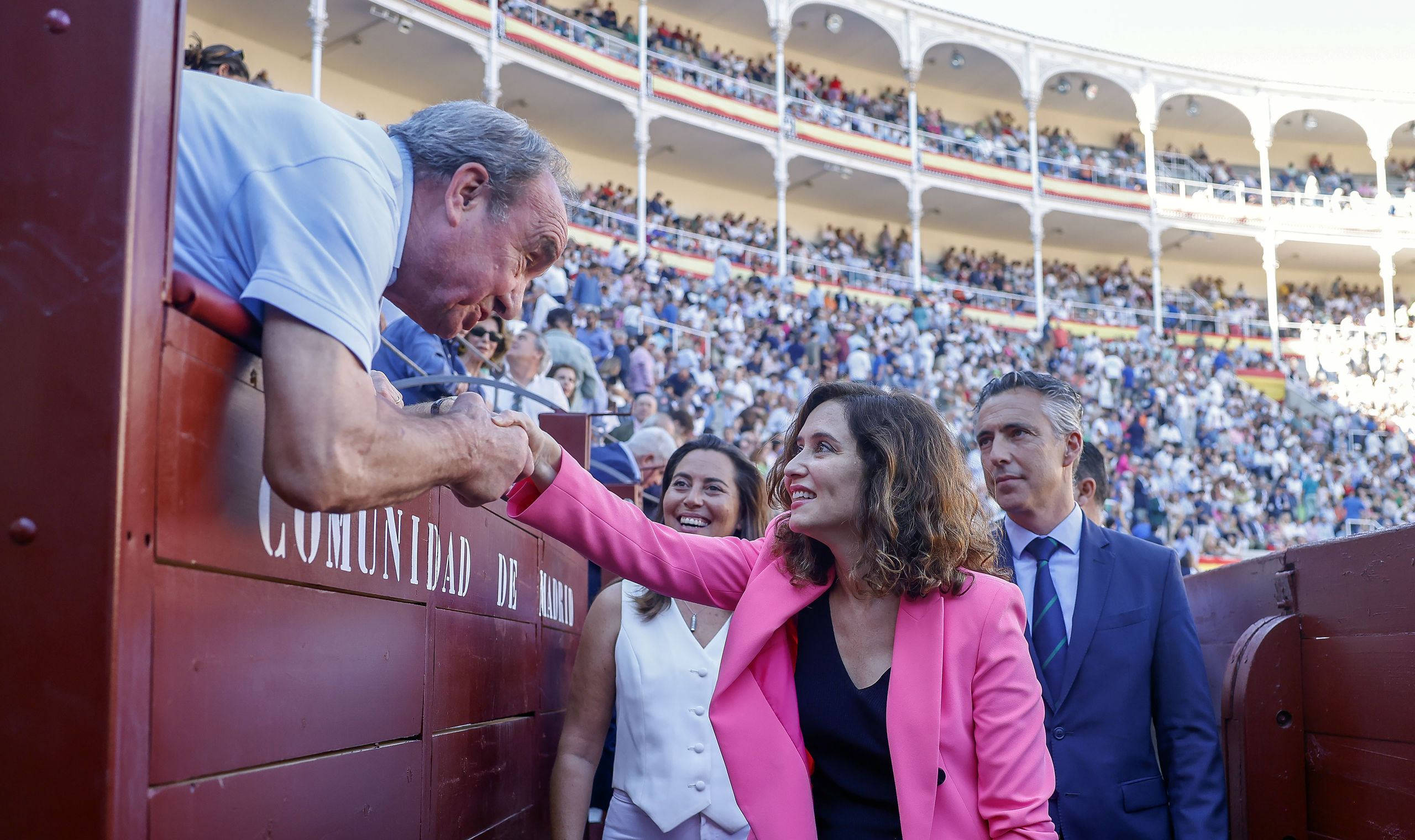 La presidenta de la Comunidad de Madrid recibe agradecida el brindis de El Juli. En la red social X Ayuso ha escrito: “Gracias por tanto, maestro. Hasta siempre”.