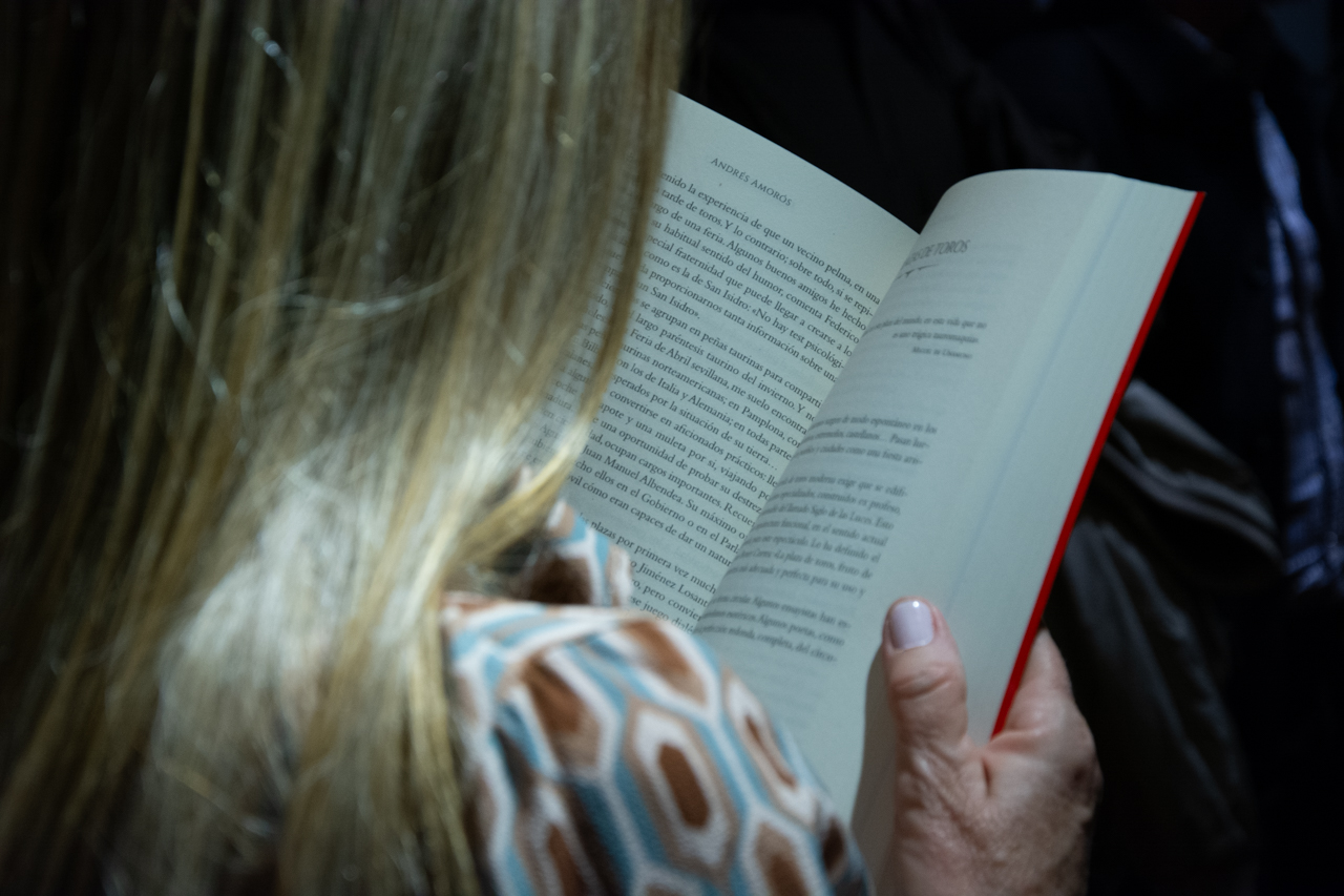 Una asistente leyendo el nuevo libro de Andrés Amorós El Arte del Toreo.