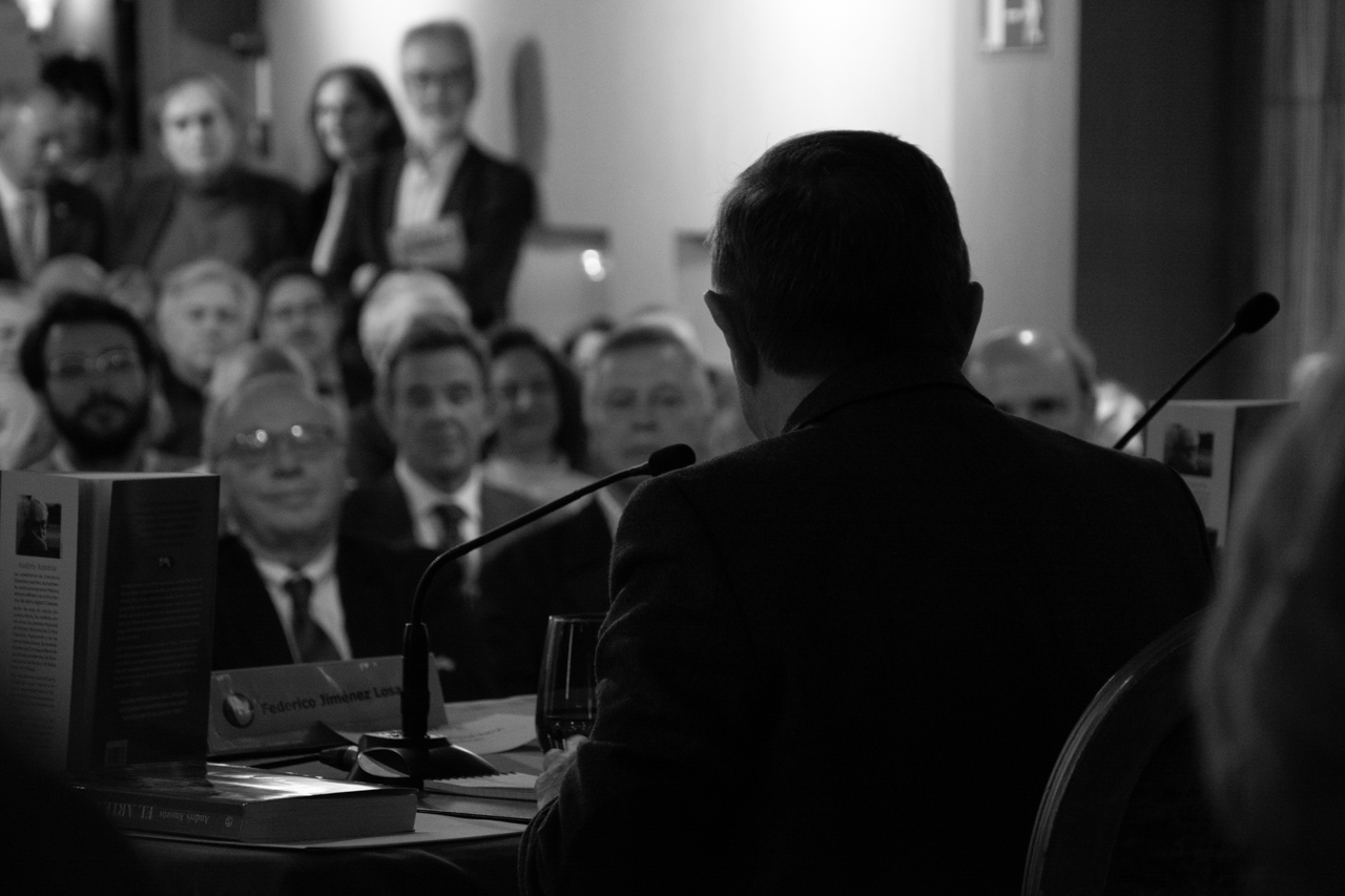 El autor de El Arte del Toreo escucha a Federico Jiménez Losantos durante su intervención.