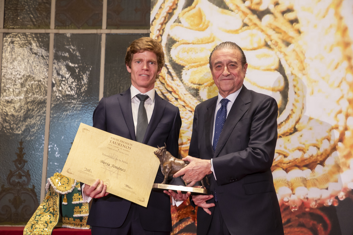 El torero sevillano Borja Jiménez fue premiado doblemente: una como Triunfador de la Feria de San Isidro 2024 y otra como autor de la Mejor Faena del ciclo isidril, la que hizo al toro Dulce de Victoriano del Río. Jiménez, que hará tres paseíllos en la Feria de San Isidro 2025 que se presento hace dos semanas, viene de hacer una triunfal temporada americana y ganándose por derecho estar en los mejores carteles de las ferias de esta campaña. El torero de Espartinas, que lleva varios días recogiendo premios, dio la "enhorabuena" a sus compañeros por los premios y dijo que "hay toros en la vida de un torero que marcan la historia de su toreo y este (Dulce) es uno de ellos". También se acordó del toro de Victorino Martín que en 2023 le "sacó del pozo en el que estaba".
