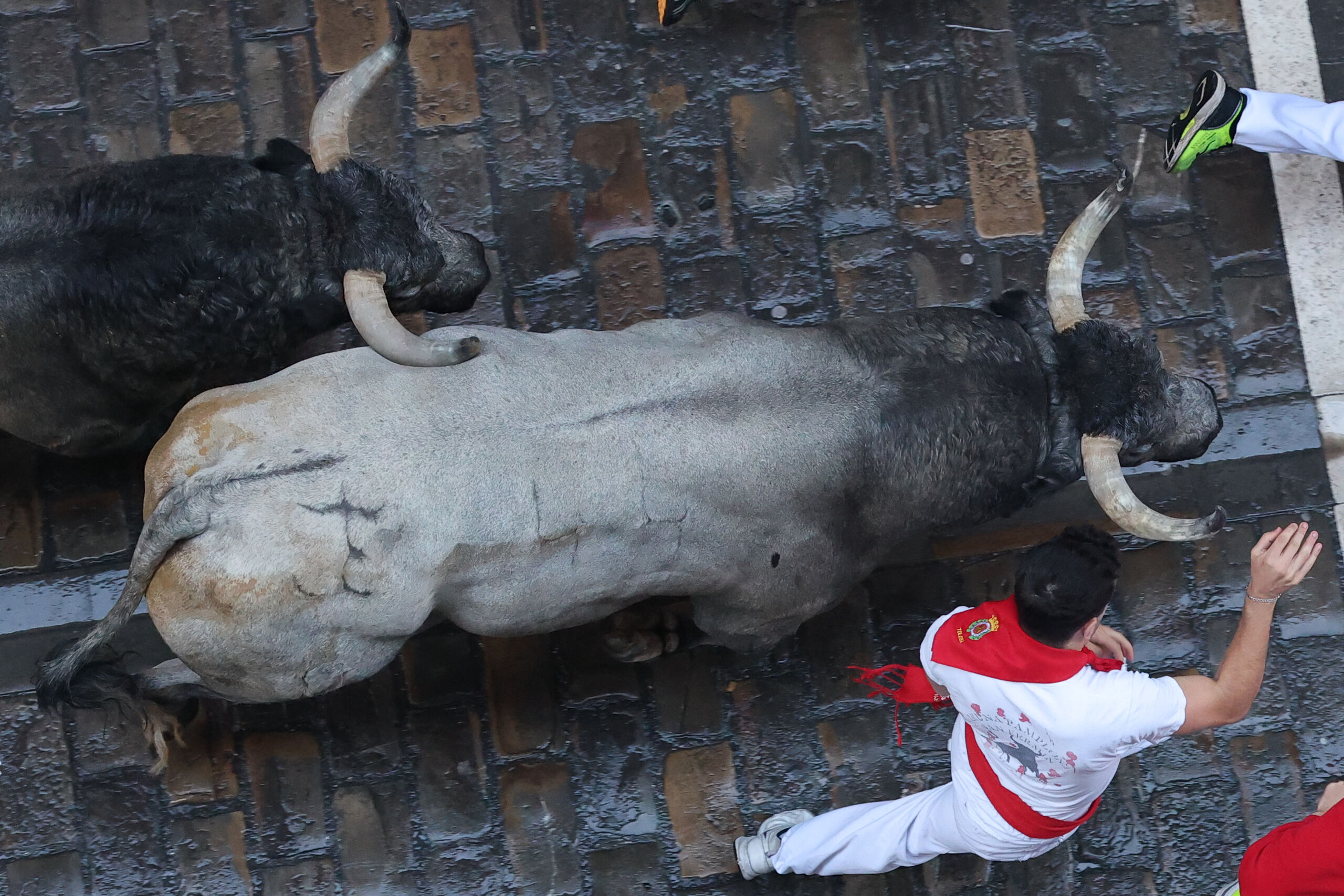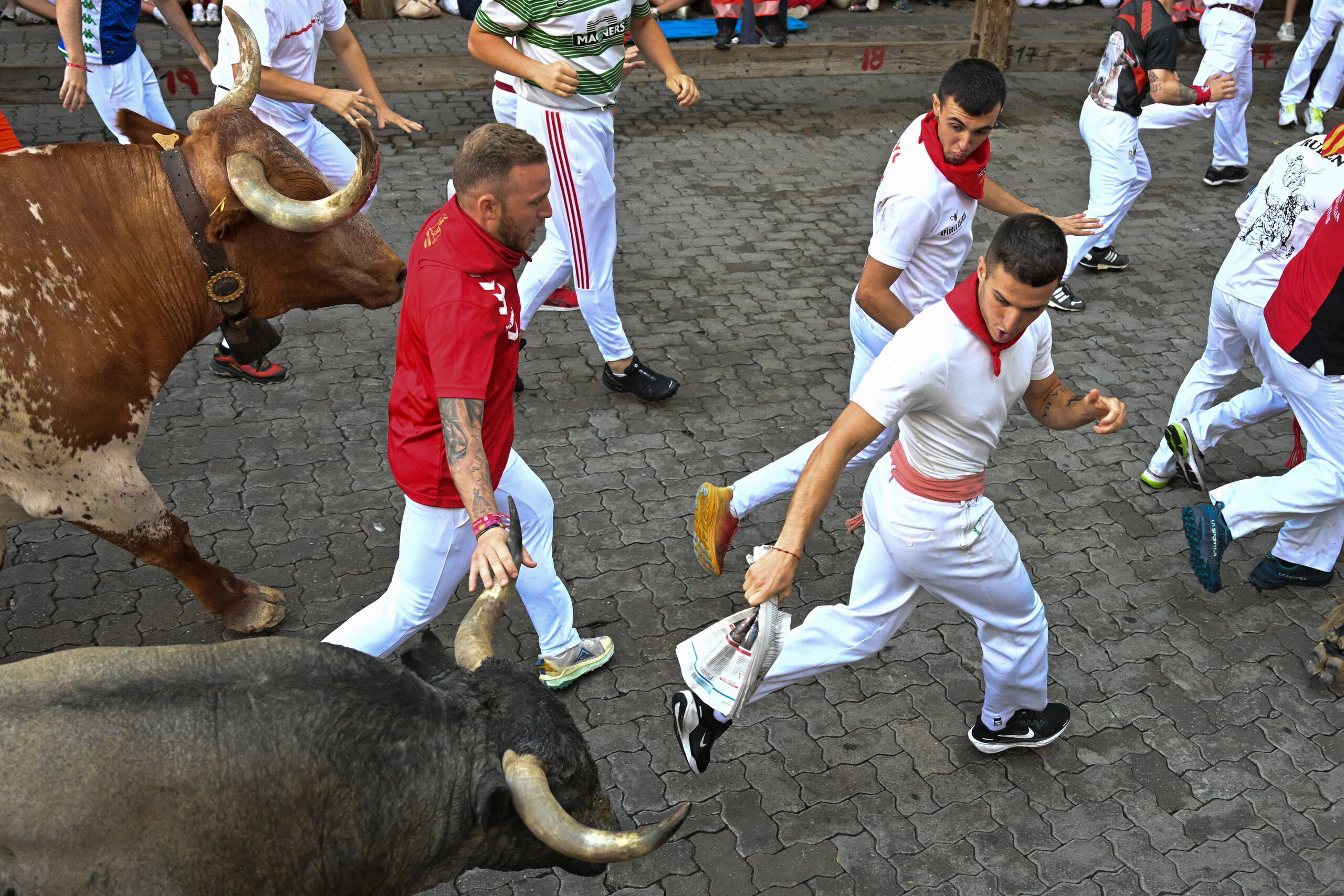 A pesar del caos y la intensidad del encierro, no ha habido heridos por asta de toro. Cuatro personas han resultado lesionadas, según el balance provisional ofrecido por Cruz Roja. El susto mayor se ha producido cuando un astado ha embestido violentamente contra el burladero.