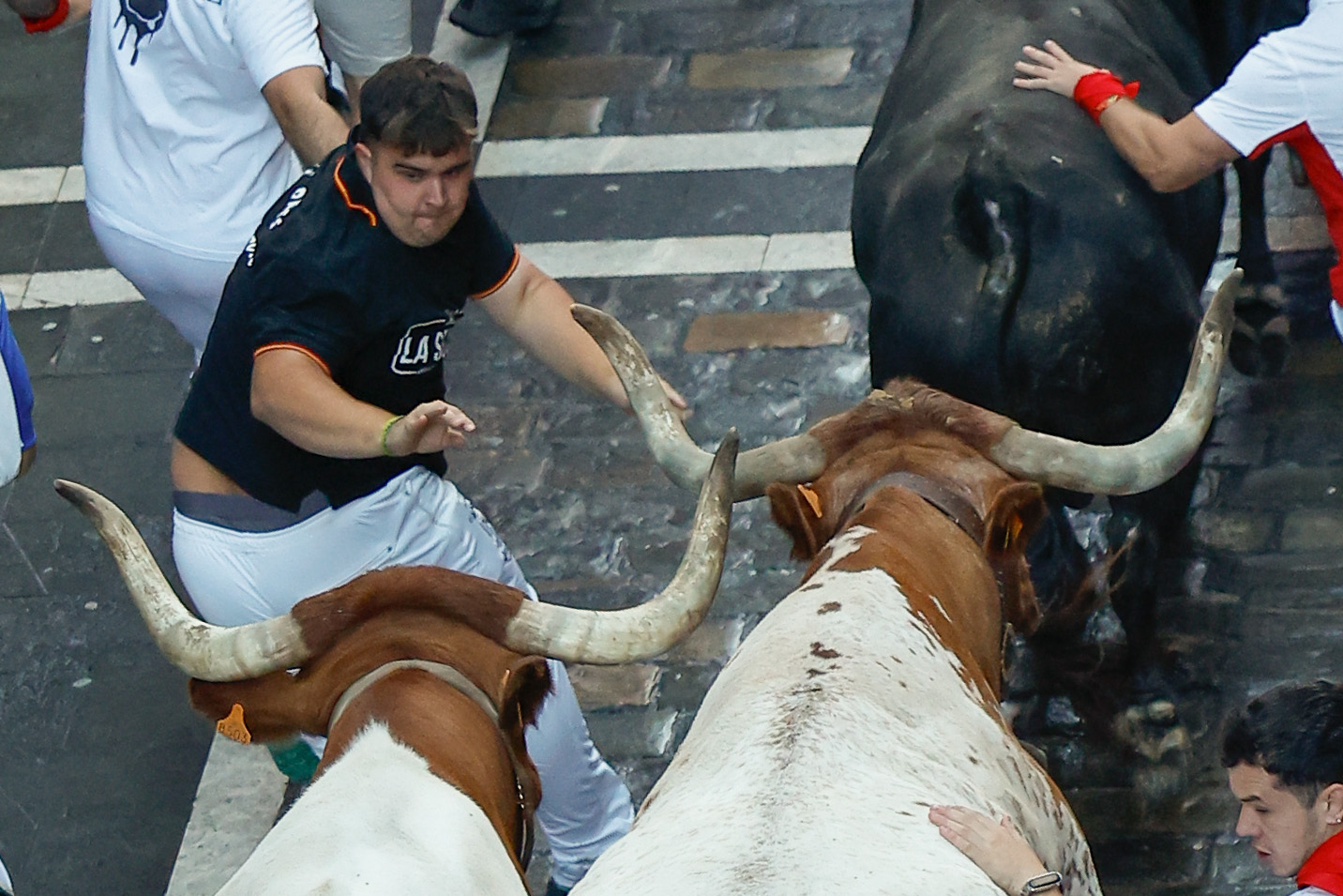 El séptimo encierro de los Sanfermines 2025 ha sido el más accidentado hasta la fecha, con tres mozos corneados y seis traslados al hospital.