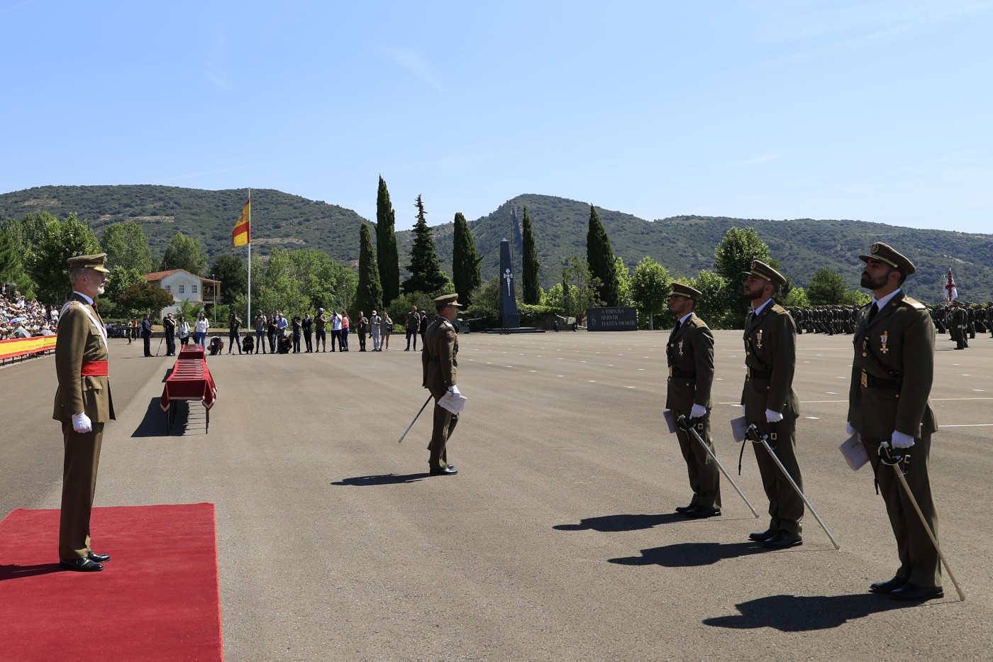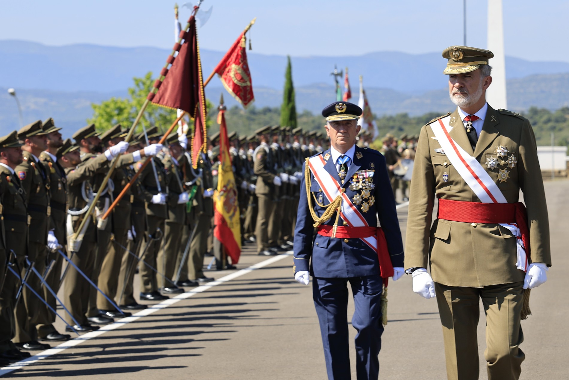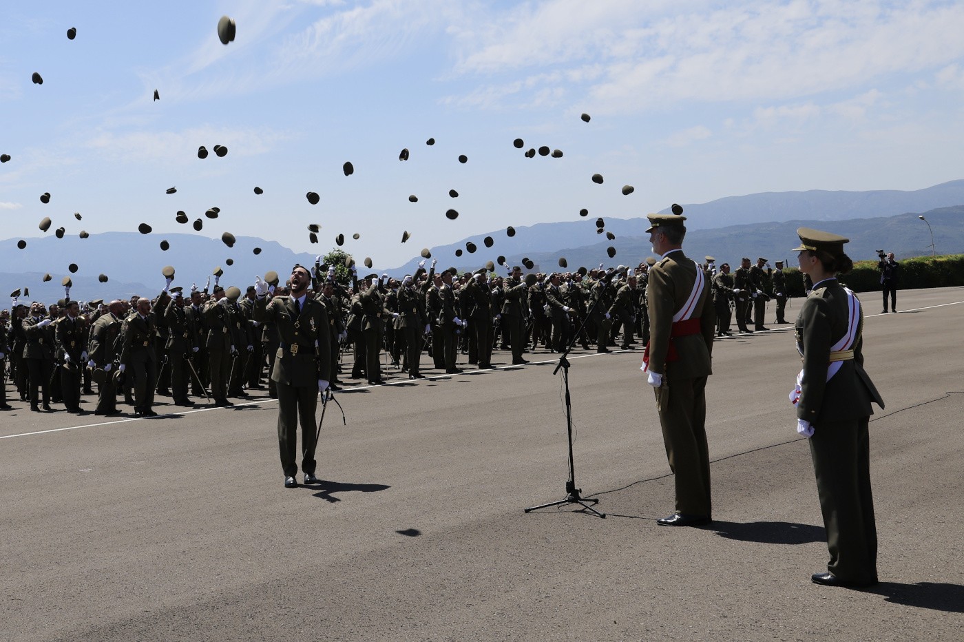 El rey Felipe VI, acompañado por la Princesa de Asturias, la alférez Leonor de Borbón, ha presidido la entrega de despachos de la Academia General Básica de Suboficiales (AGBS) del Ejército de Tierra.