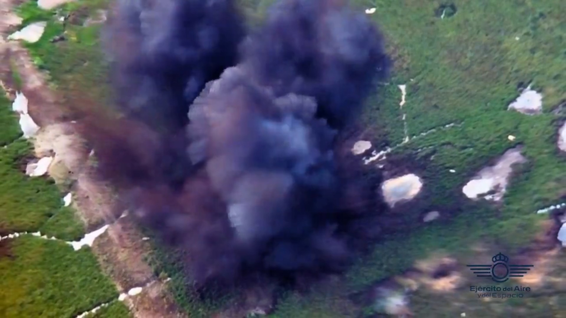 Así explotó una bomba GBU-16, guiada por láser y de un peso aproximado de 500 kilos, que lanzó uno de los Eurofighter españoles durante el Arctic Defender 2024.