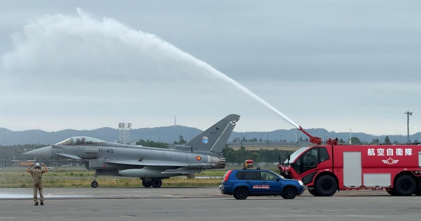 La Fuerza Aérea de Autodefensa de Japón recibió con honores a las aeronaves españoles en su primer aterrizaje de la historia en suelo nipón.