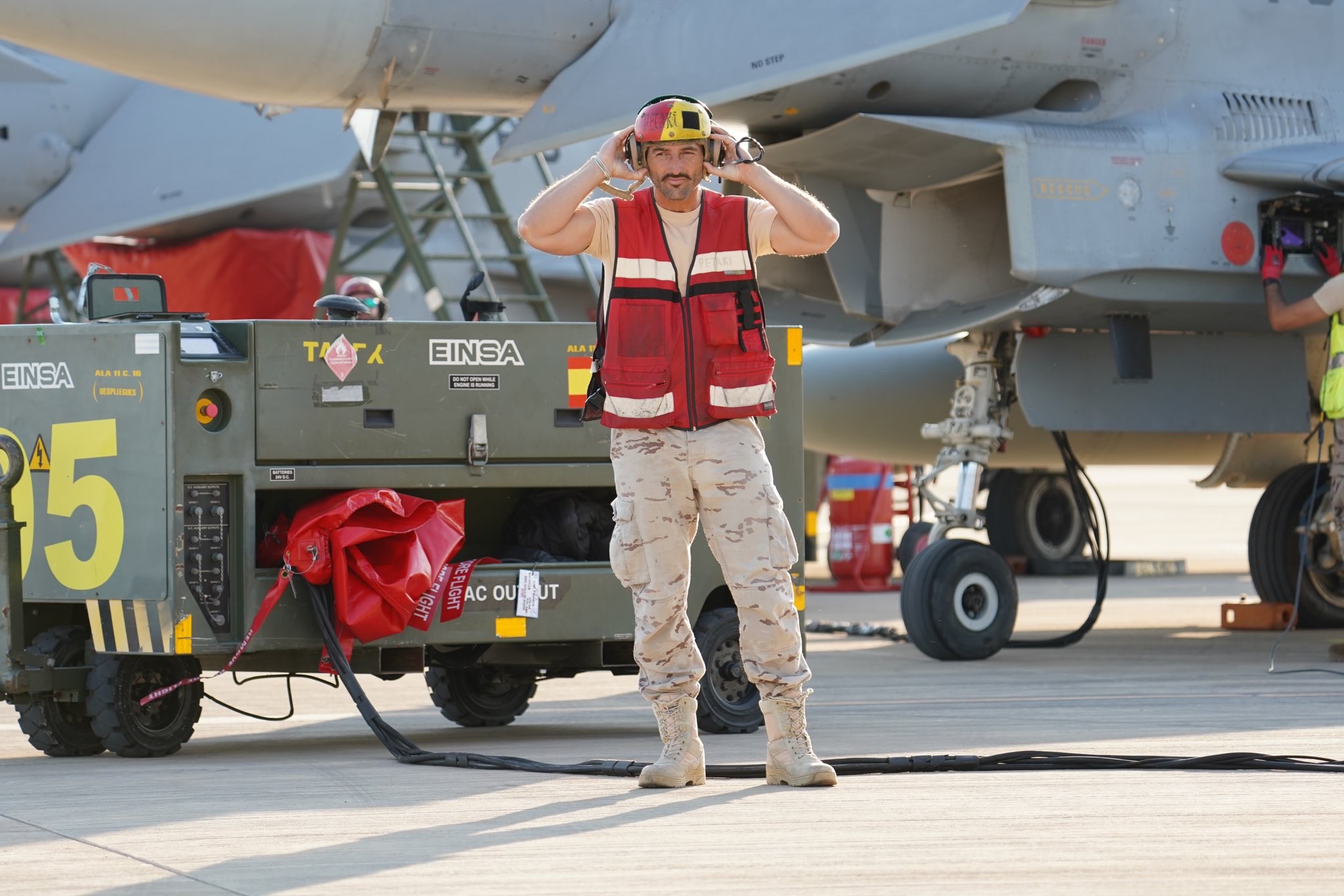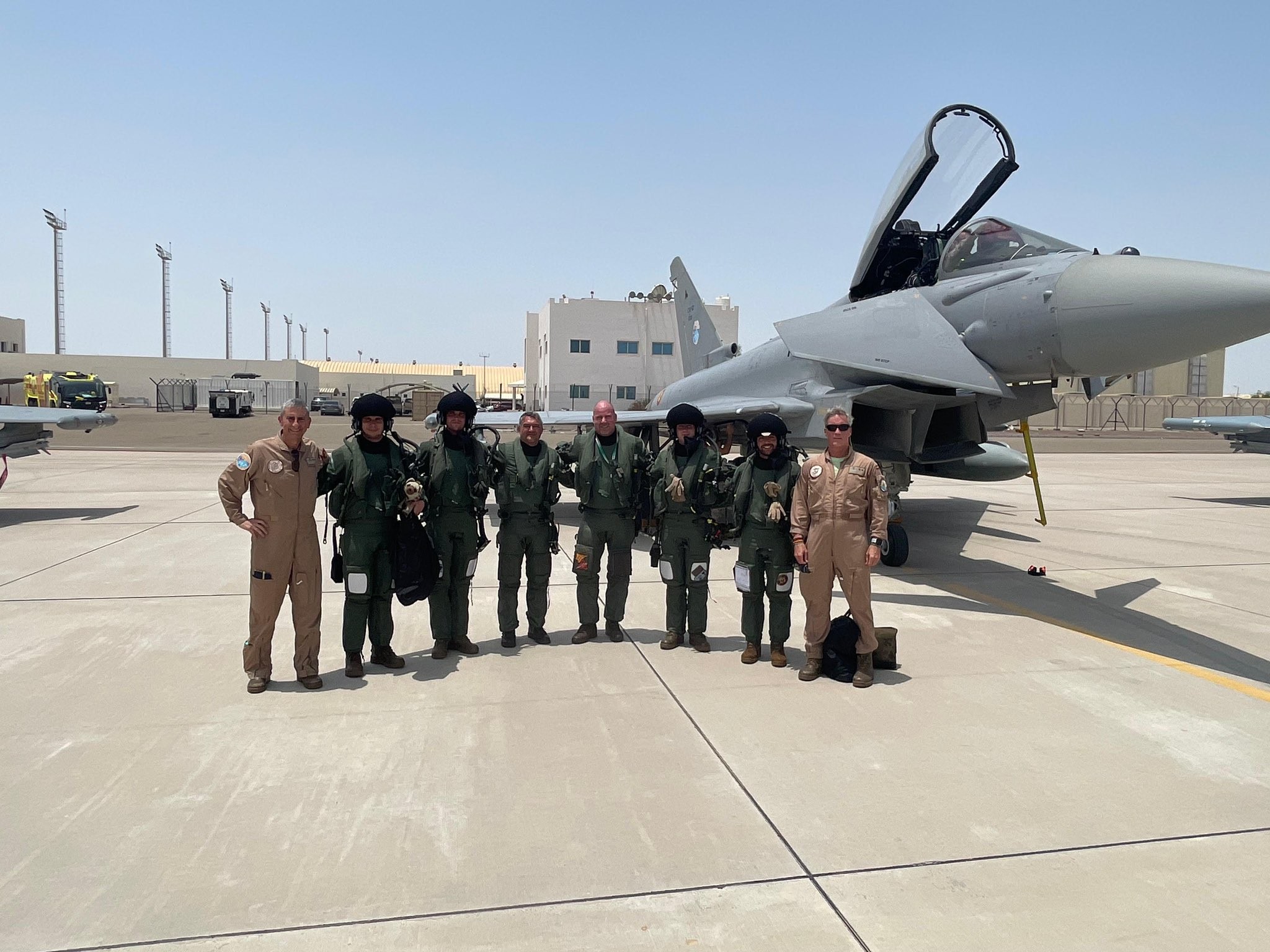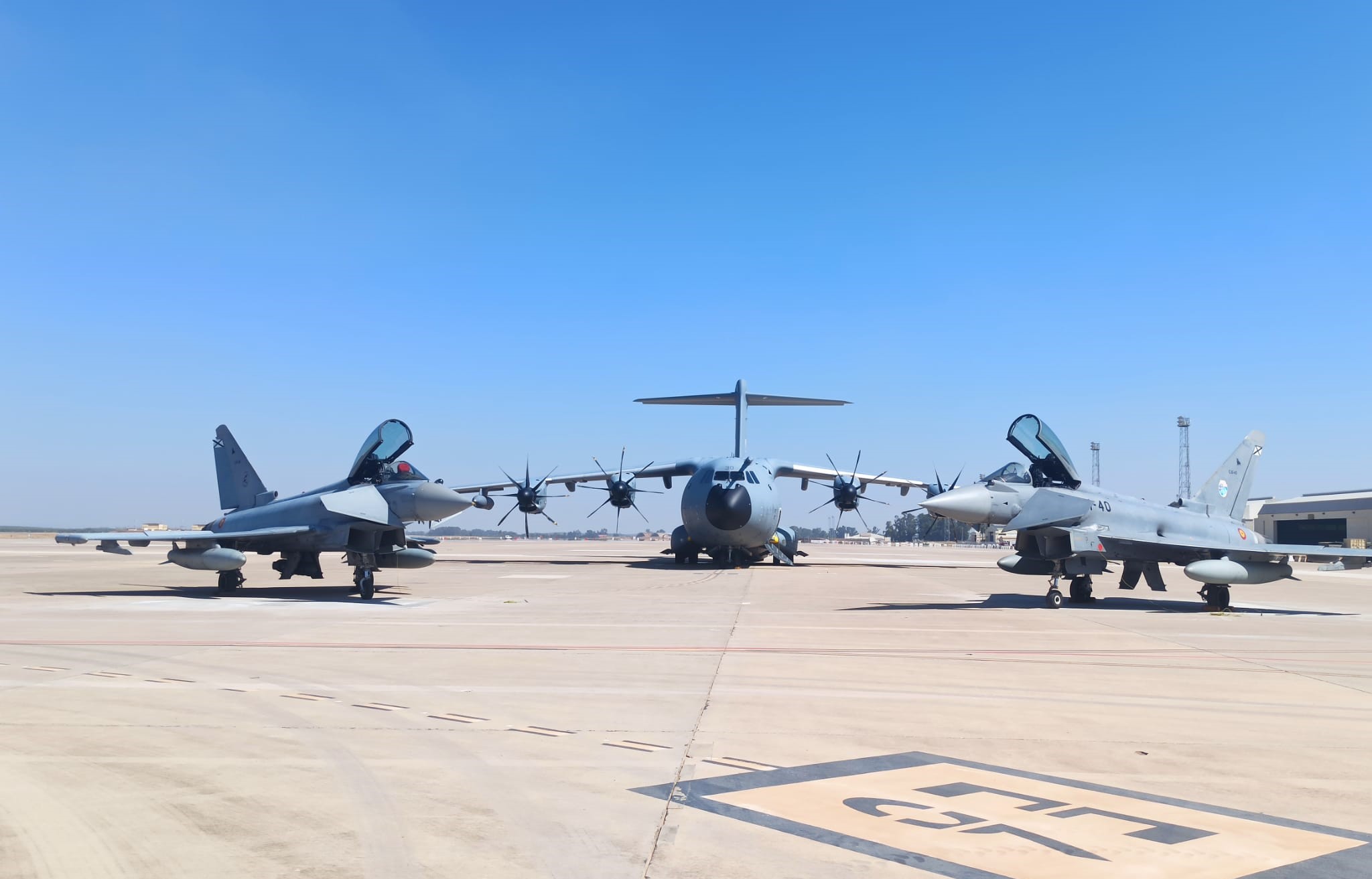 La Fuerza Aérea española ha aportado a esta aventura cuatro cazas Eurofighter Typhoon (dos del Ala 11 de Morón de la Frontera y dos del Ala 14 de Albacete), dos aviones A-400M (Ala 31 con base en Zaragoza) y un A330 (45 Grupo de Fuerzas Aéreas con base en Torrejón de Ardoz).