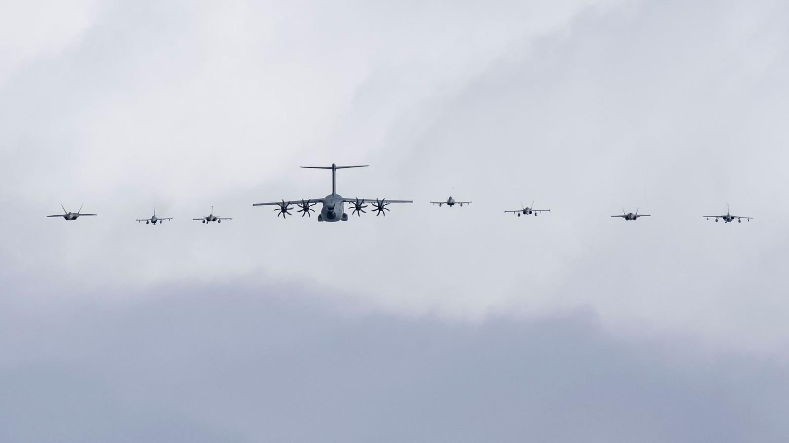 Aviones militares de España, Francia y Alemania volando juntos desde Europa a Canadá.