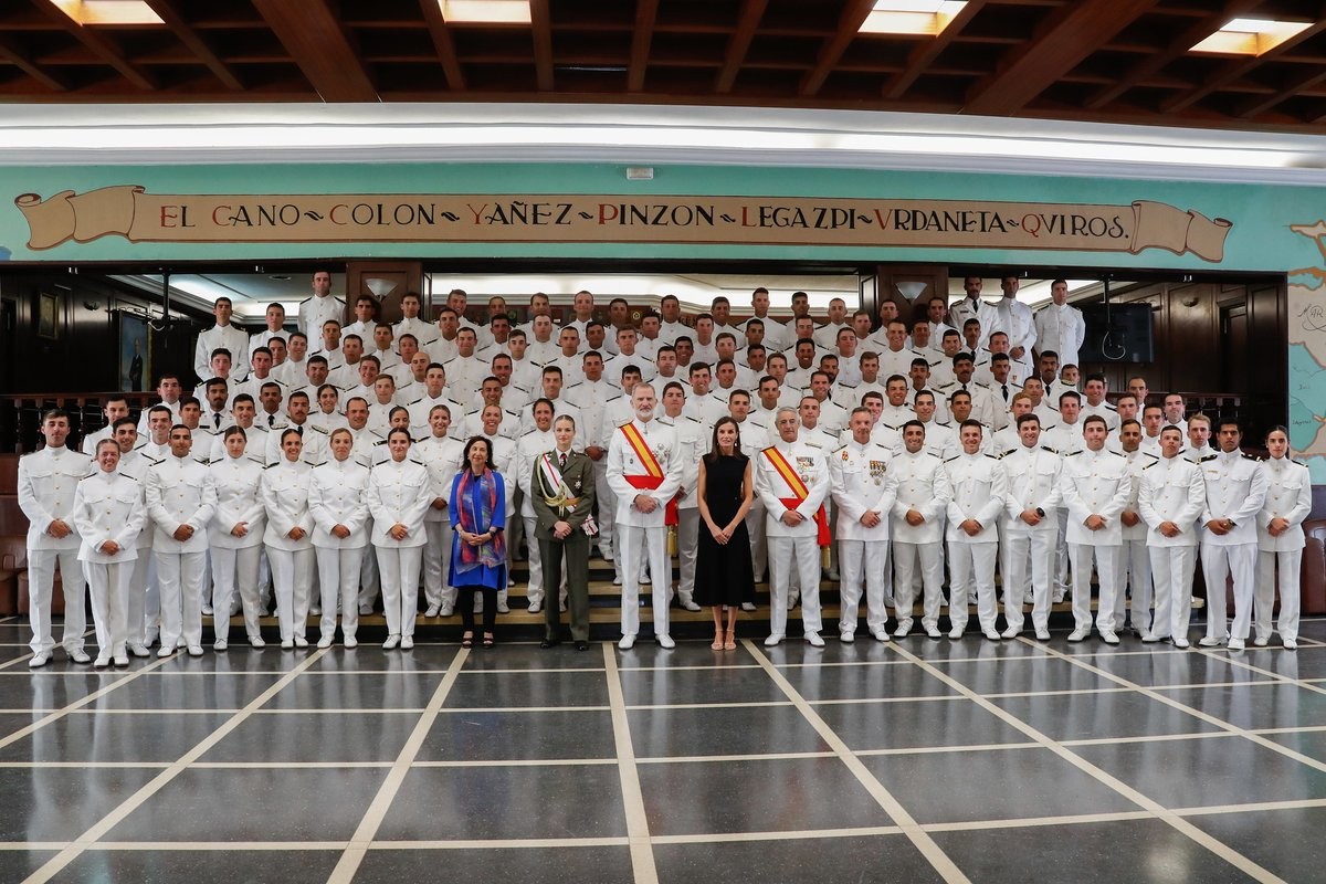 Foto de familia de los Reyes de España y la Princesa de Asturias en la Academia Naval Militar de Marín (Pontevedra)