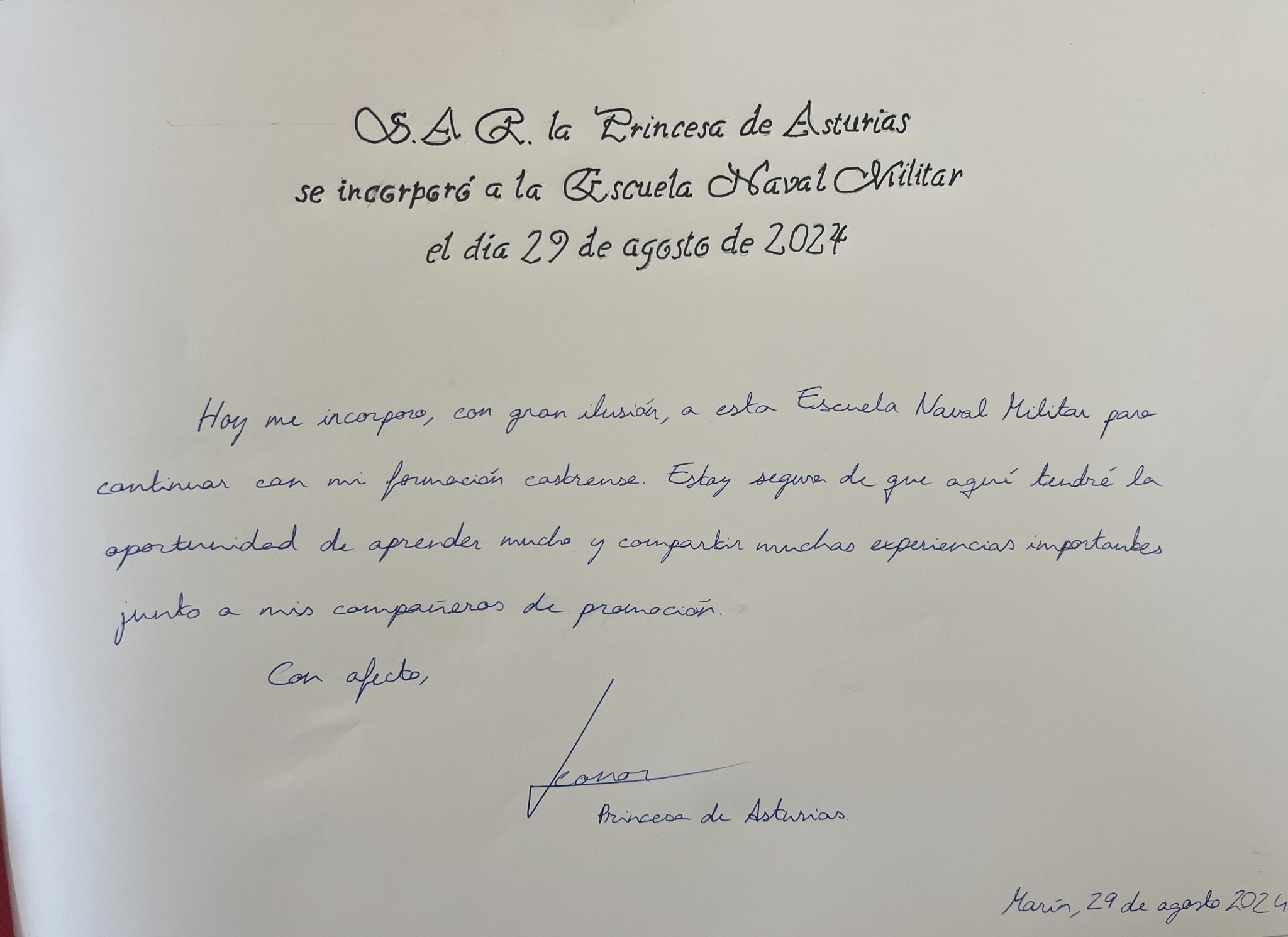 “Hoy me incorporo, con gran ilusión, a esta Escuela Naval Militar para continuar con mi formación castrense. Estoy segura de que aquí tendré la oportunidad de aprender mucho y compartir muchas experiencias importantes junto a mis compañeros de promoción", ha escrito la heredera de la Corona.