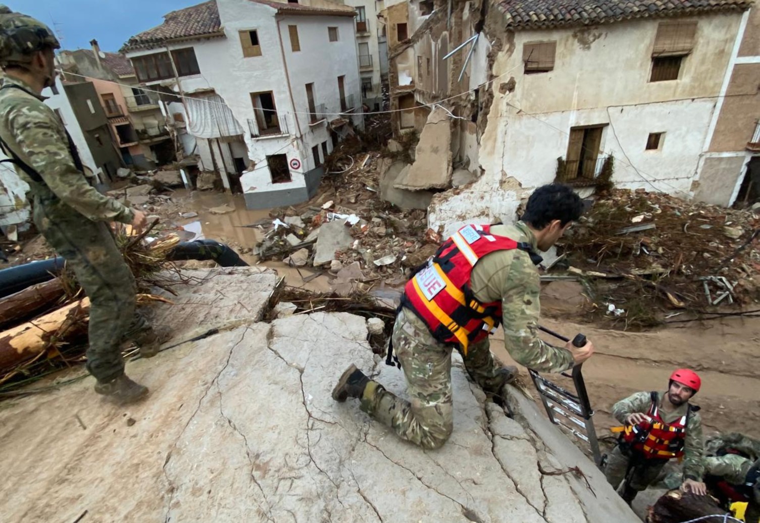 No ha sido hasta este viernes cuando en Valencia han empezado a colaborar por tierra los militares de Tierra, Armada y Aire, horas después de que el presidente Mazón solicitara ayuda por "tierra, mar y aire". La previsión del Ministerio de Defensa es que esta noche, una vez se hayan incorporado los 750 efectivos previstos para hoy, haya unos 2.000 militares de las FAS desplegados sobre el terreno.