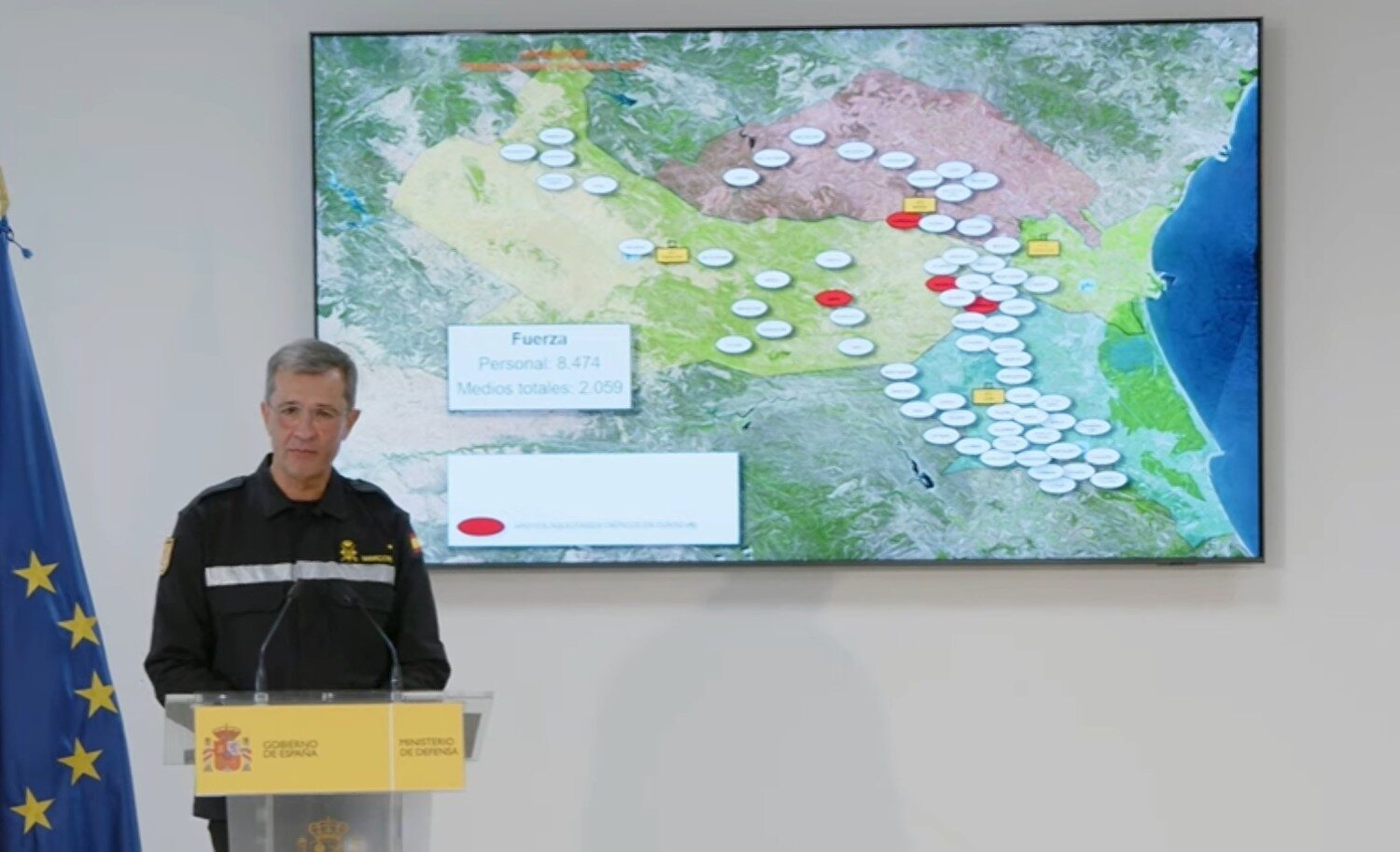 "Estamos en todos esos municipios –en alusión a los 72 mencionados– y en las vías de comunicación que enlazan esos municipios. Hay casas aisladas, infraestructuras que estamos reparando... Tenemos que actuar con el corazón, porque hay gente que está sufriendo, pero sobre todo con cabeza. Llevamos ya 595 misiones. Hay misiones que duran 5 horas y otras que desde el primer día no están cerradas", ha dicho.