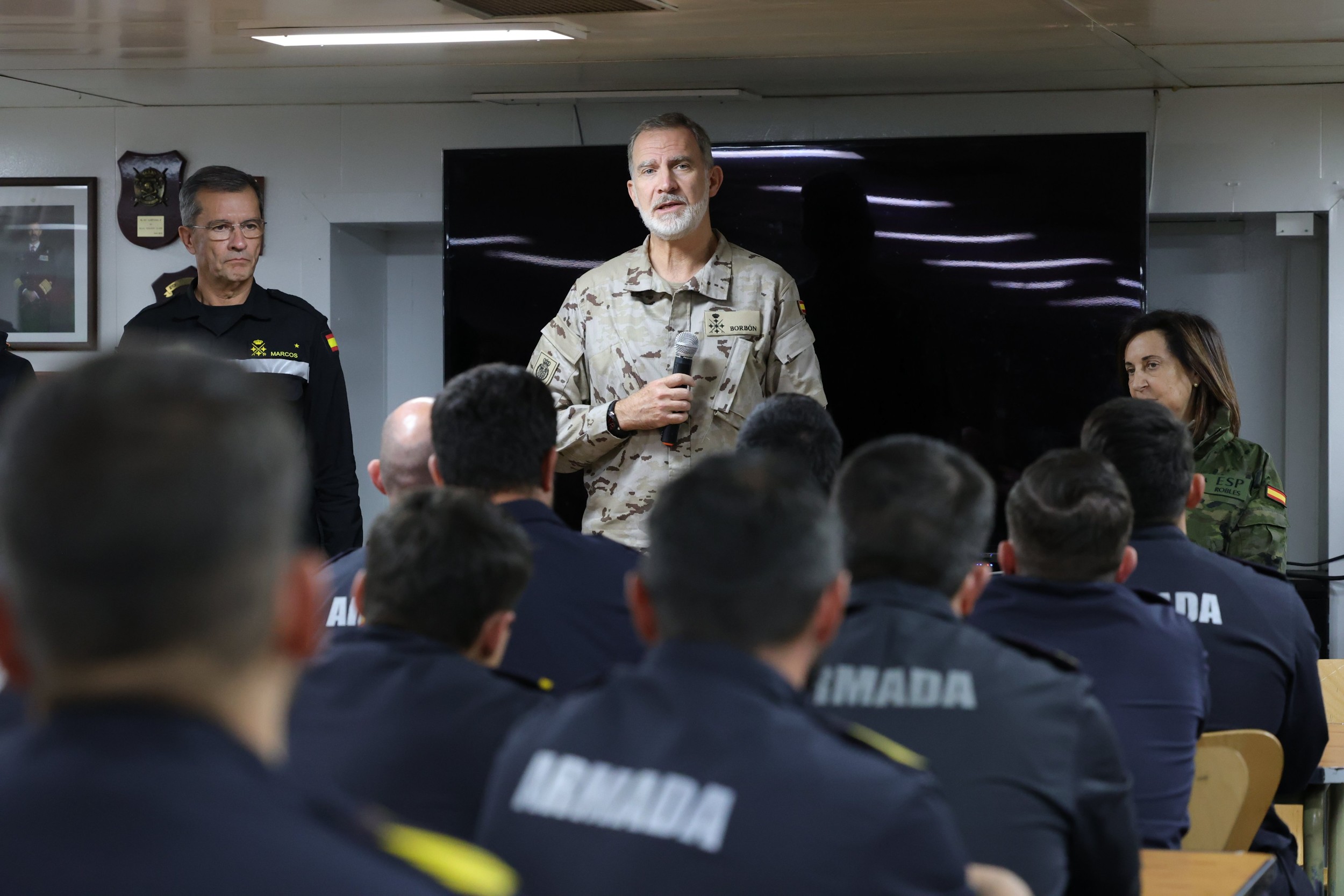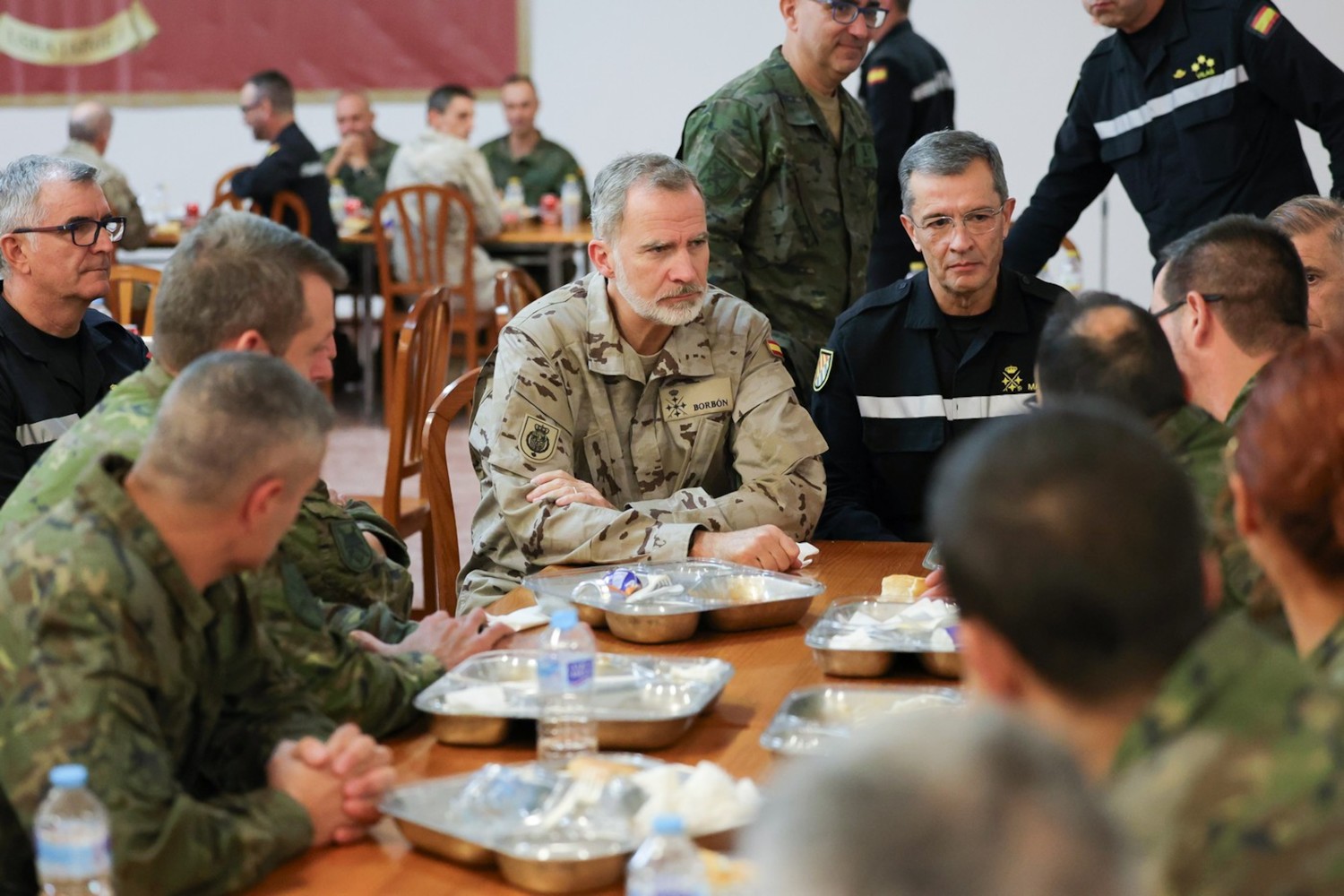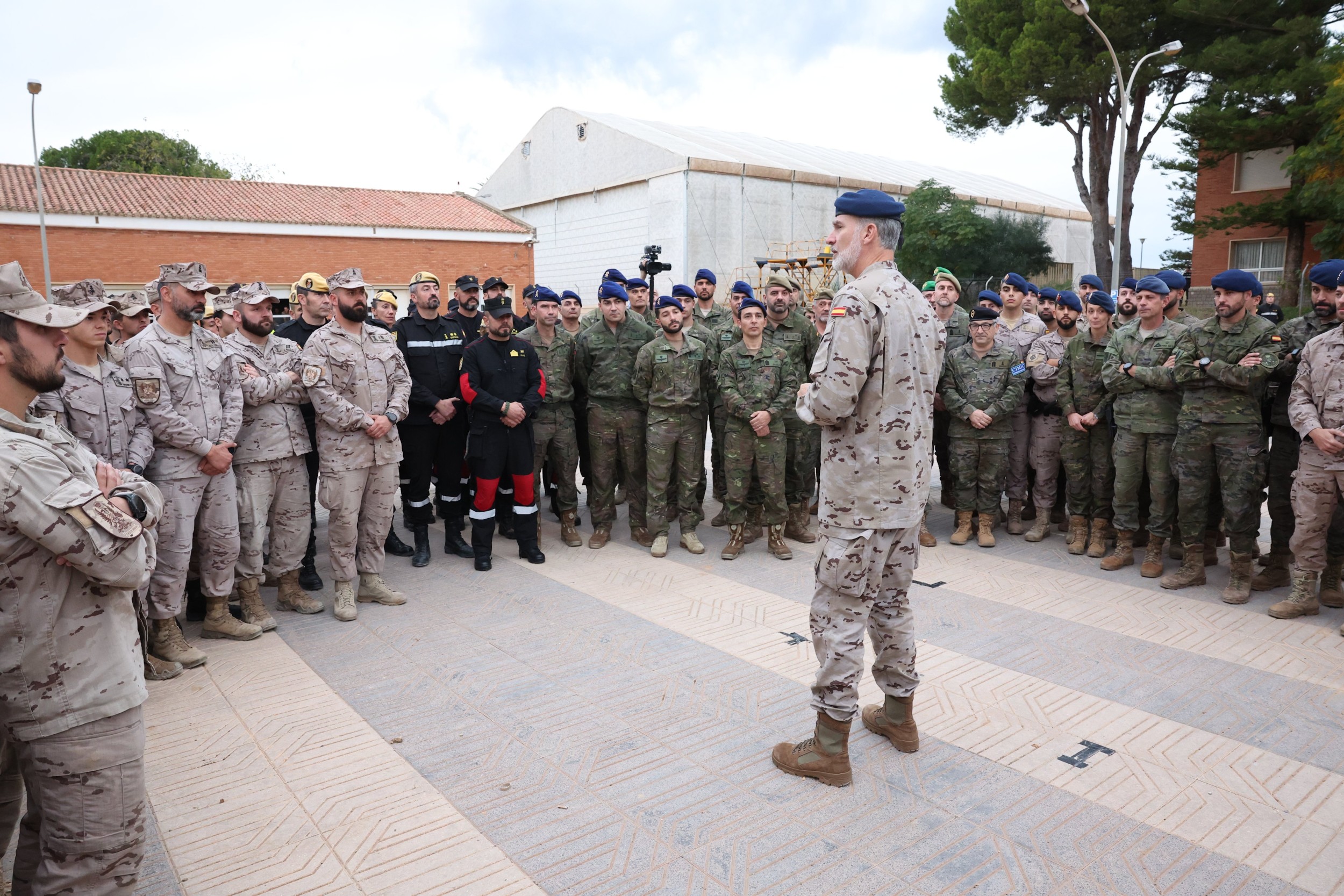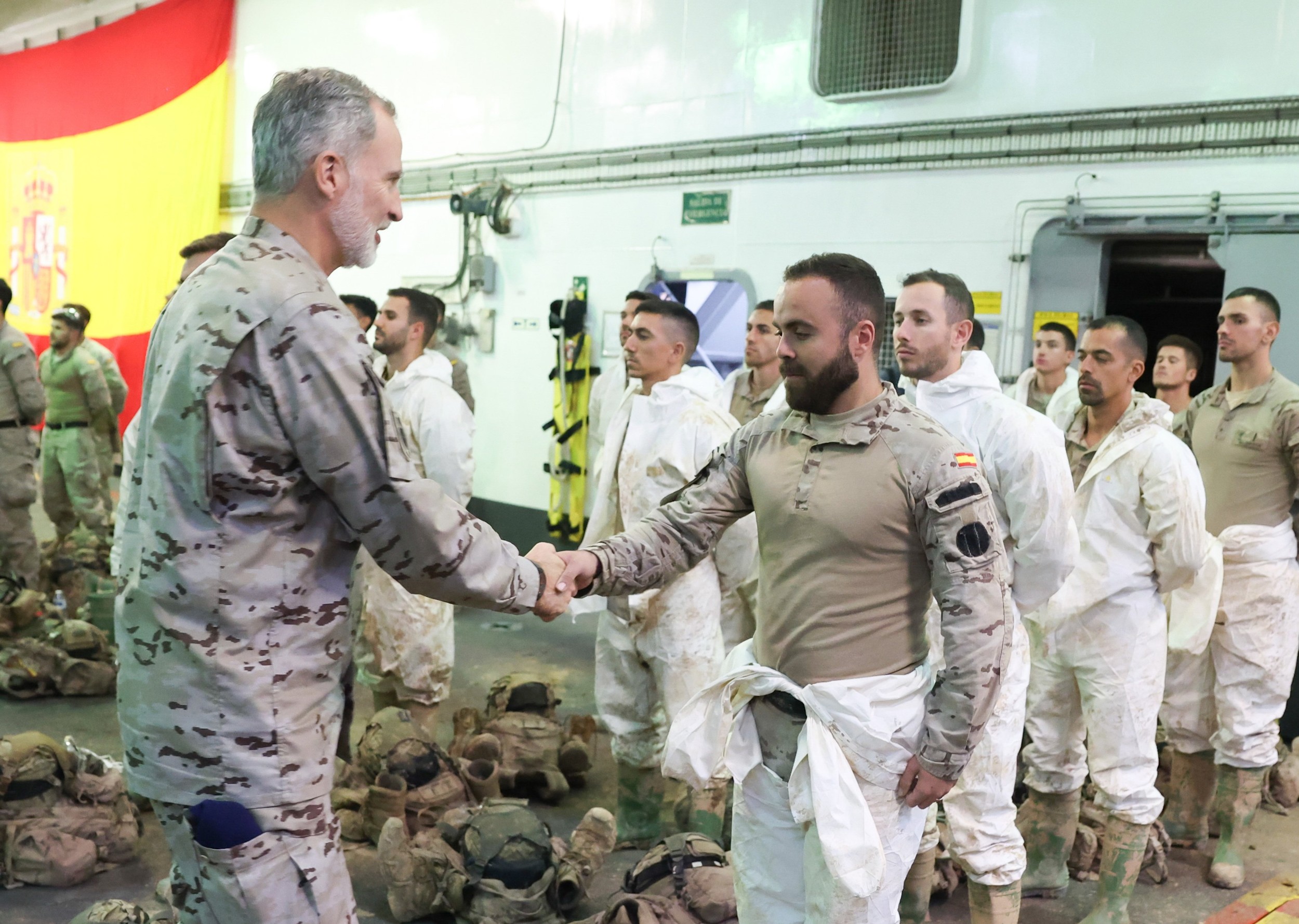 Don Felipe ha estrechado la mano a buena parte de los militares que están participando en las misiones de apoyo a las zonas más devastadas por la DANA.