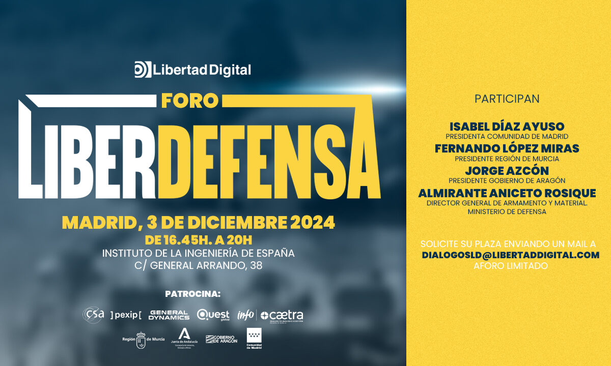 El próximo martes 3 de diciembre se celebra el I Foro Liberdefensa, un evento organizado por el Grupo Libertad Digital con la colaboración del Instituto de la Ingeniería de España, para abordar con expertos del sector las principales cuestiones relativas a la industria de defensa española en el actual contexto geopolítico, económico y tecnológico. Libertad Digital sitúa así a la defensa y su industria en el foco del máximo interés informativo e institucional.