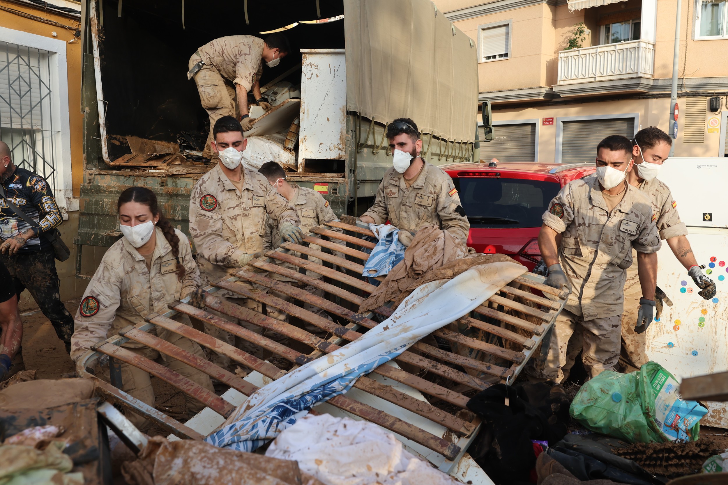 Las Fuerzas Armadas empezaron su despliegue inicial en la zona la misma noche de los hechos, aunque ha habido polémica política en torno a la posibilidad de que el Gobierno central y la Generalidad Valenciana no actuaran con la rapidez necesaria para la magnitud de la catástrofe. Se han desplegado efectivos del Ejército de Tierra, Armada, Ejército del Aire y el Espacio, Unidad Militar de Emergencias y Guardia Real.