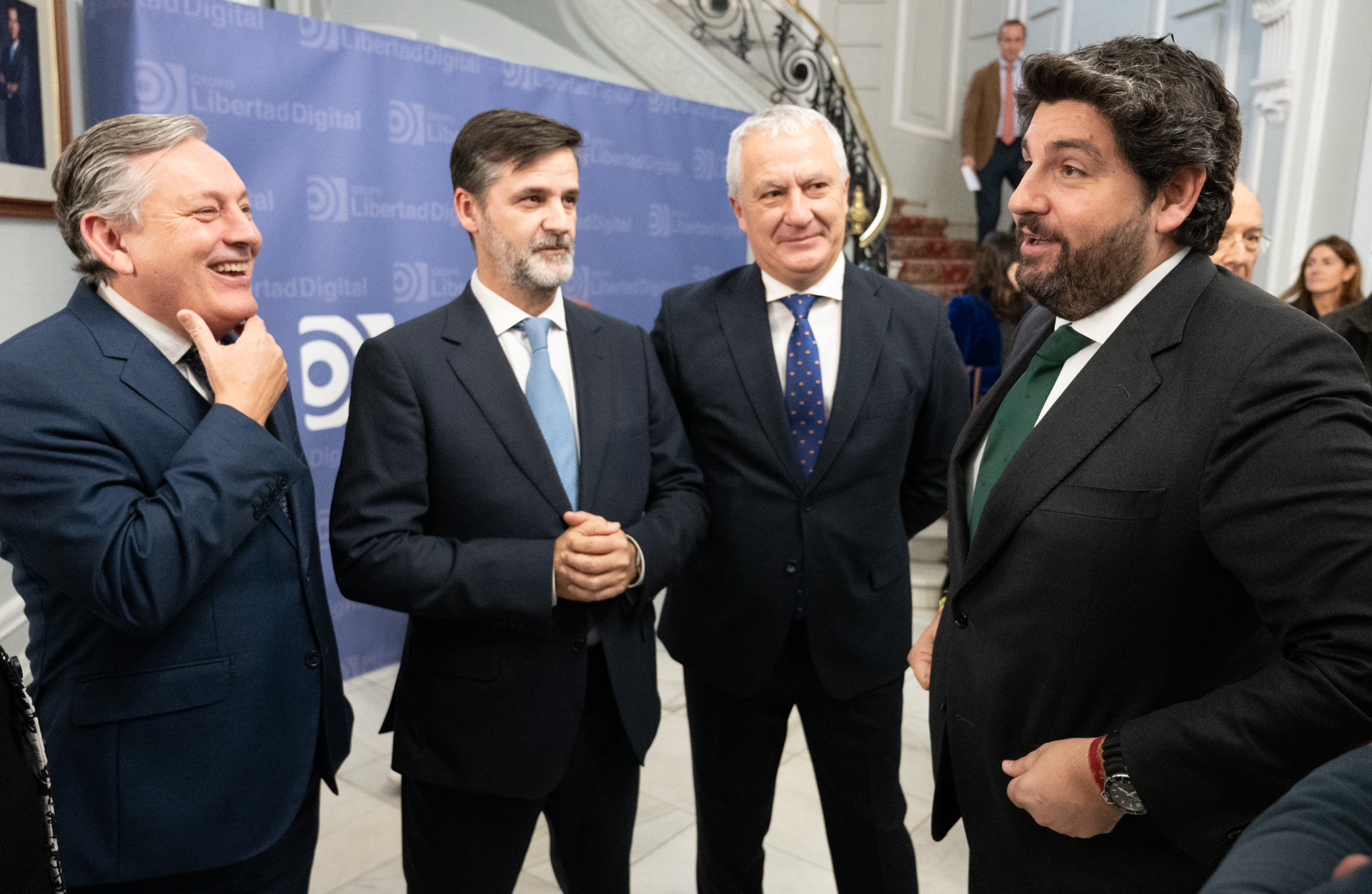 Juan Rodríguez Plaza, de Libertad Digital, Carlos Novillo, consejero de Medio Ambiente, Agricultura e Interior de la Comunidad de Madrid, y otros asistentes al foro Liberdefensa.