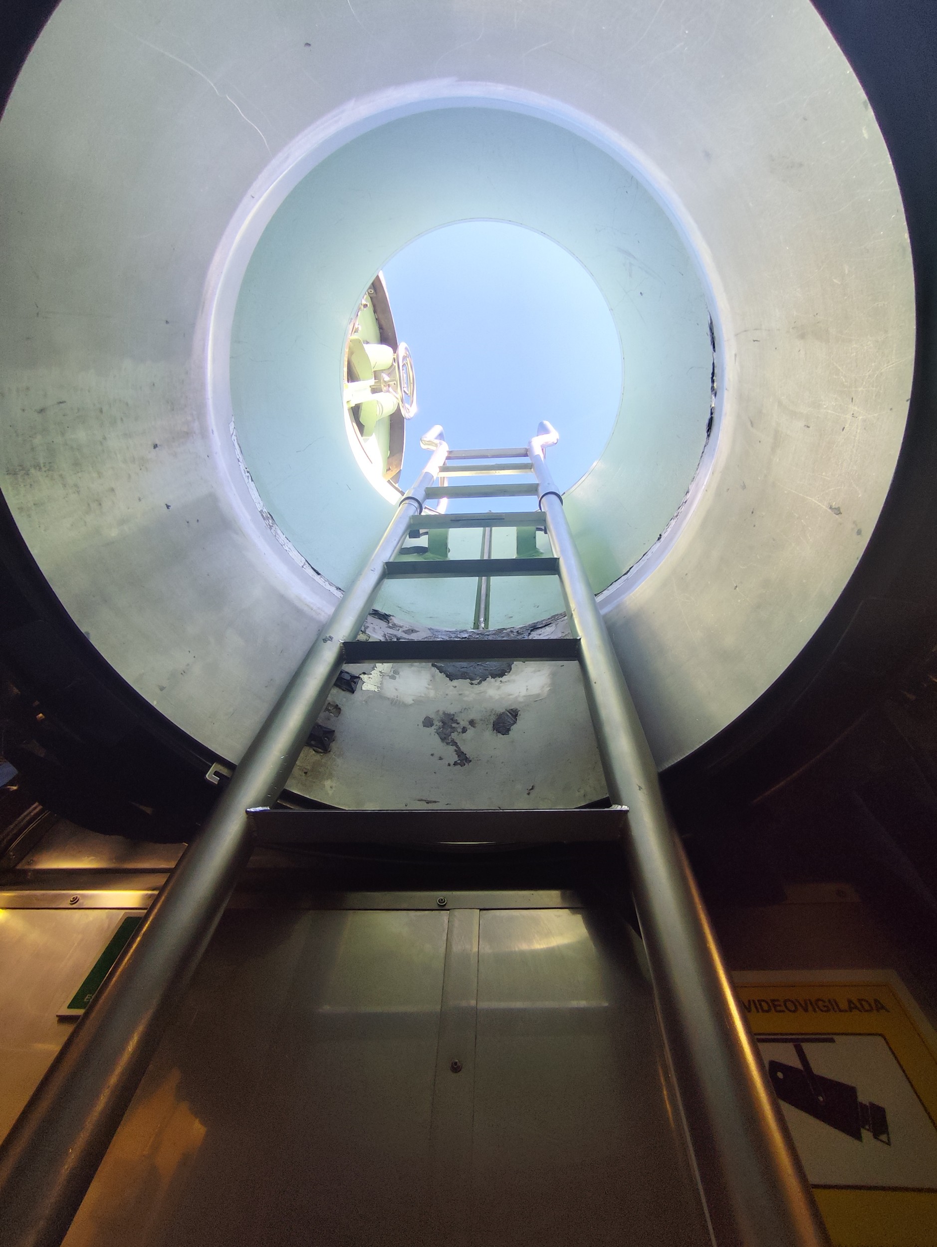 Escalera de subida desde el interior del submarino S81 Isaac Peral a la escotilla.