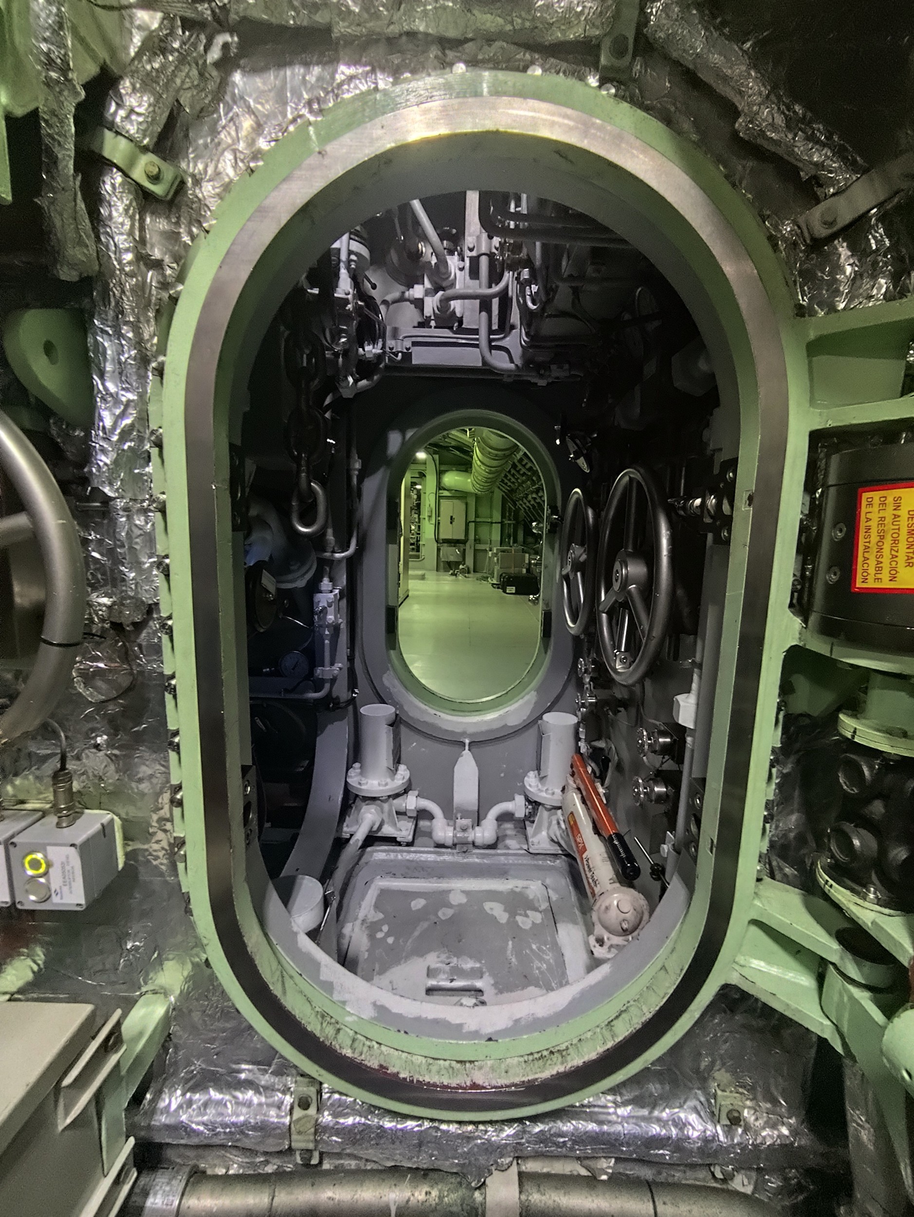 Entre la sección 3 y la sección 2 hay un coferdan, que sirve para dividir el submarino en dos compartimentos estanco y tratar de garantizar la superviviencia de la tripulación en caso de que sea necesario.