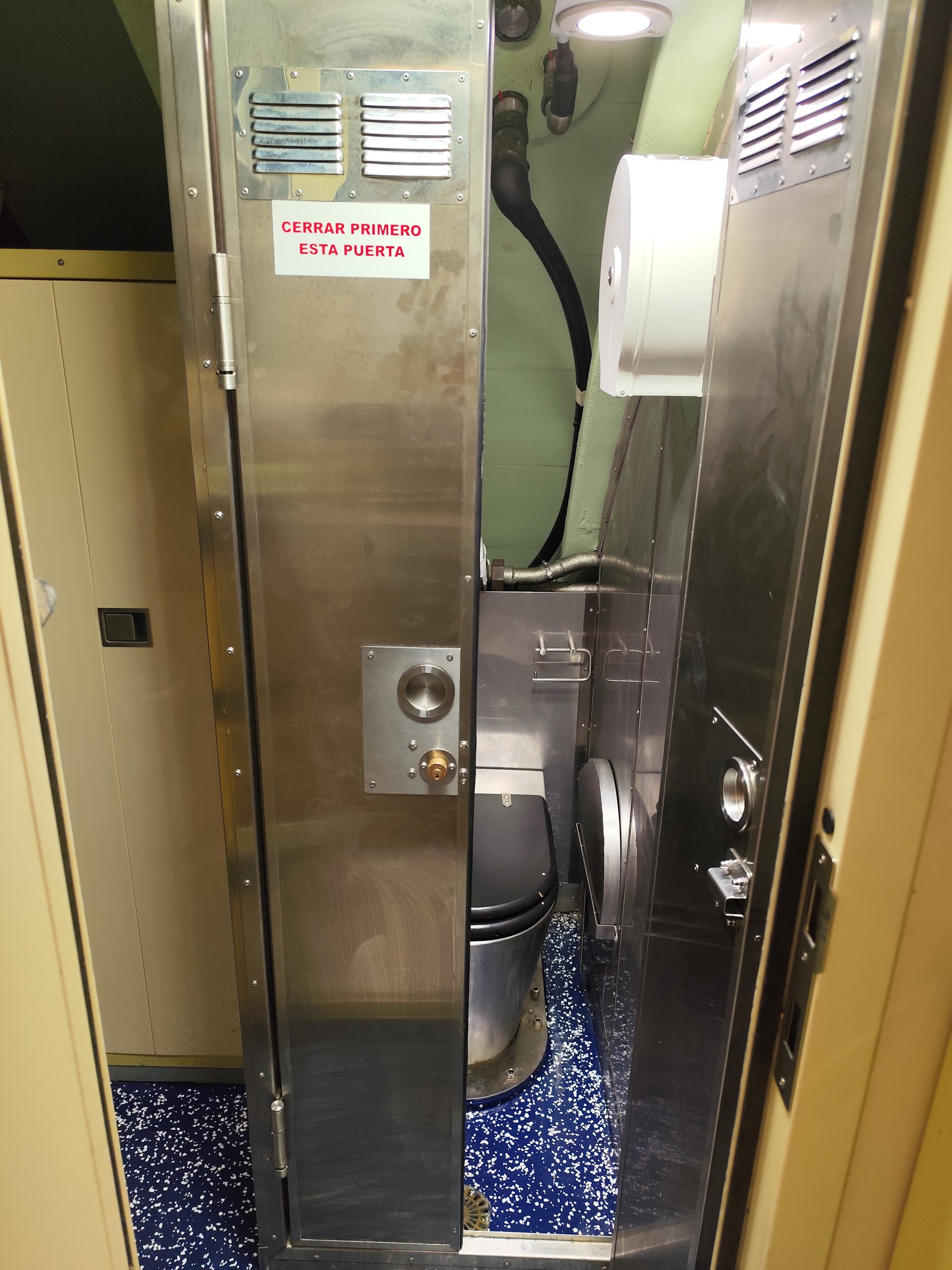 Uno de los tres retretes disponibles en el interior del S81 Isaac Peral para uso de los 43 militares que conforman la tripulación. En los clase S-70 sólo hay dos retretes para una tripulación de 55 militares.