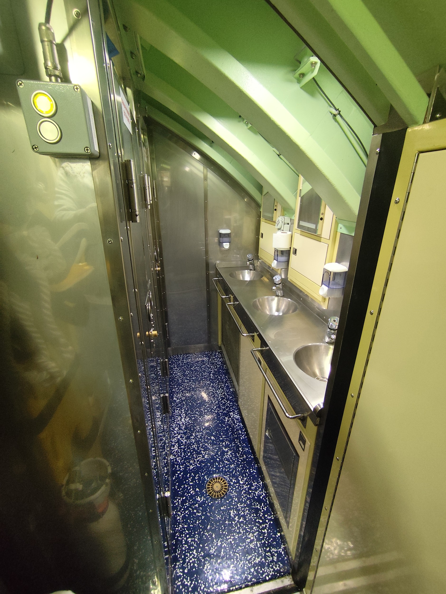 La zona de higiene personal cuenta también con tres lavabos para el personal del submarino.