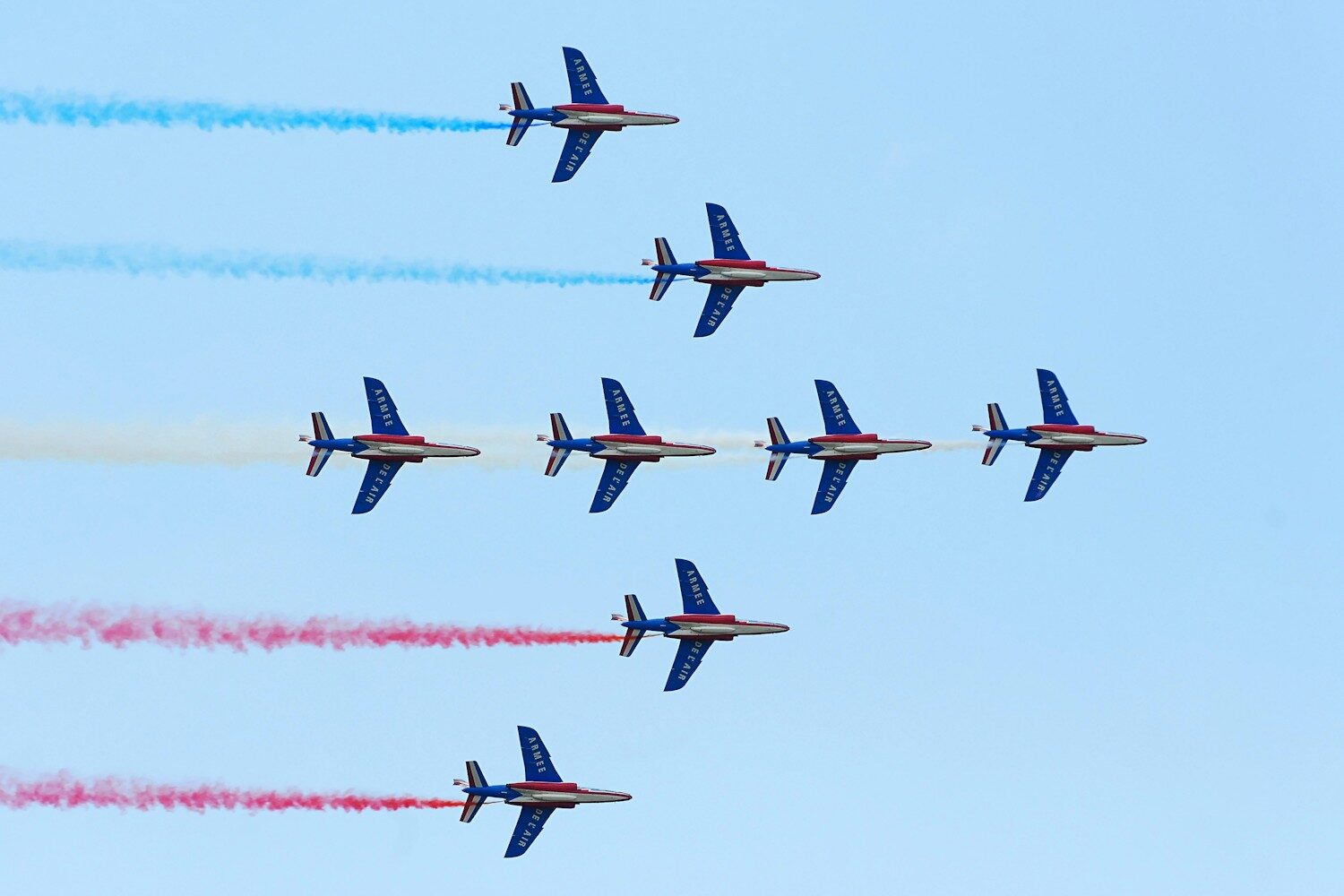 La Patrouille de France, fundada en 1953, es una de las unidades acrobáticas más reconocidas del mundo. Participa en eventos nacionales e internacionales, como el Día de la Bastilla, y opera con Alpha Jets desde 1981.