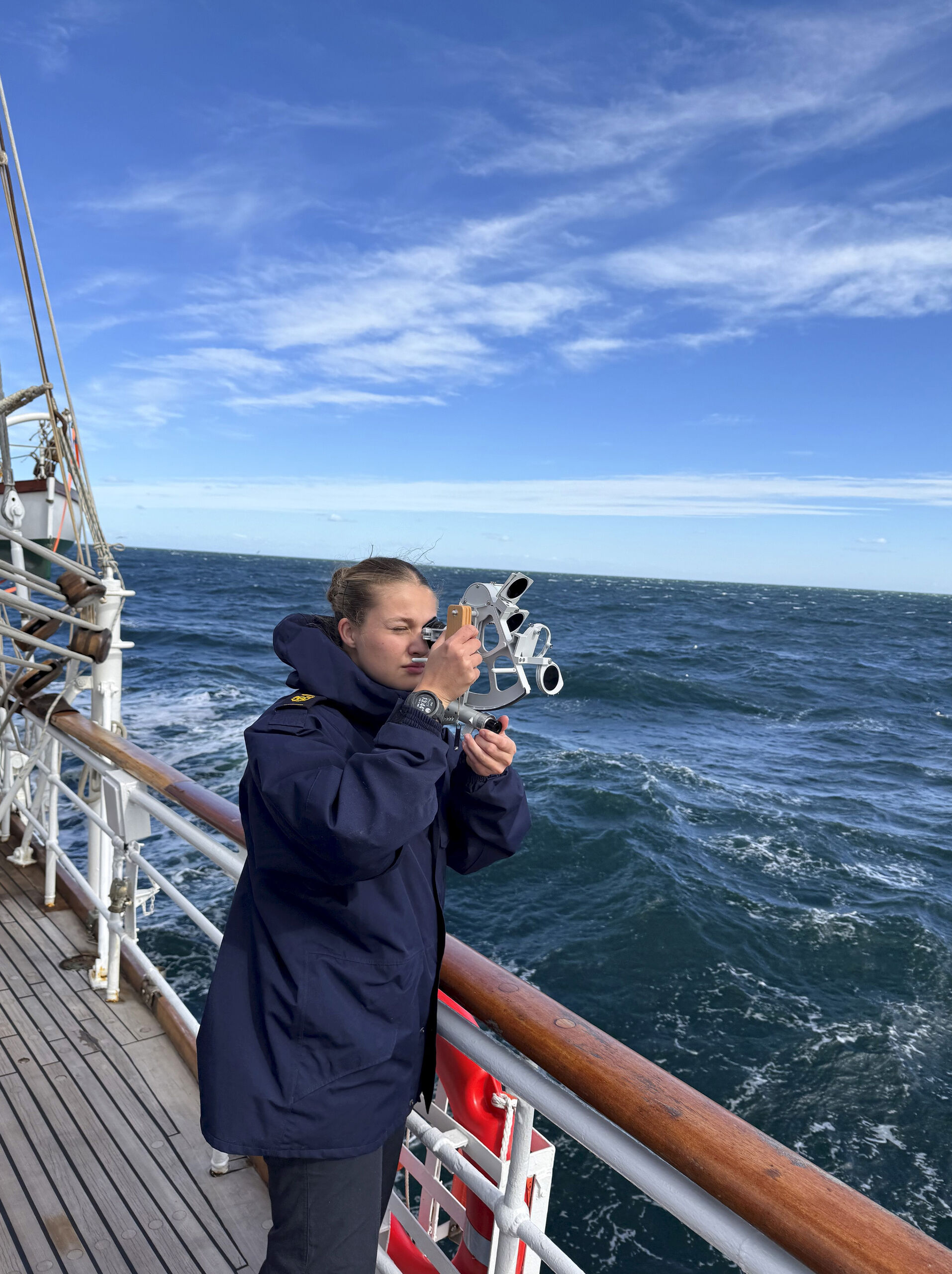 A la heredera a la Corona se la ve relajada, sonriente pero sobretodo colaboradora como la que más en las maniobras habituales a bordo del crucero de instrucción.