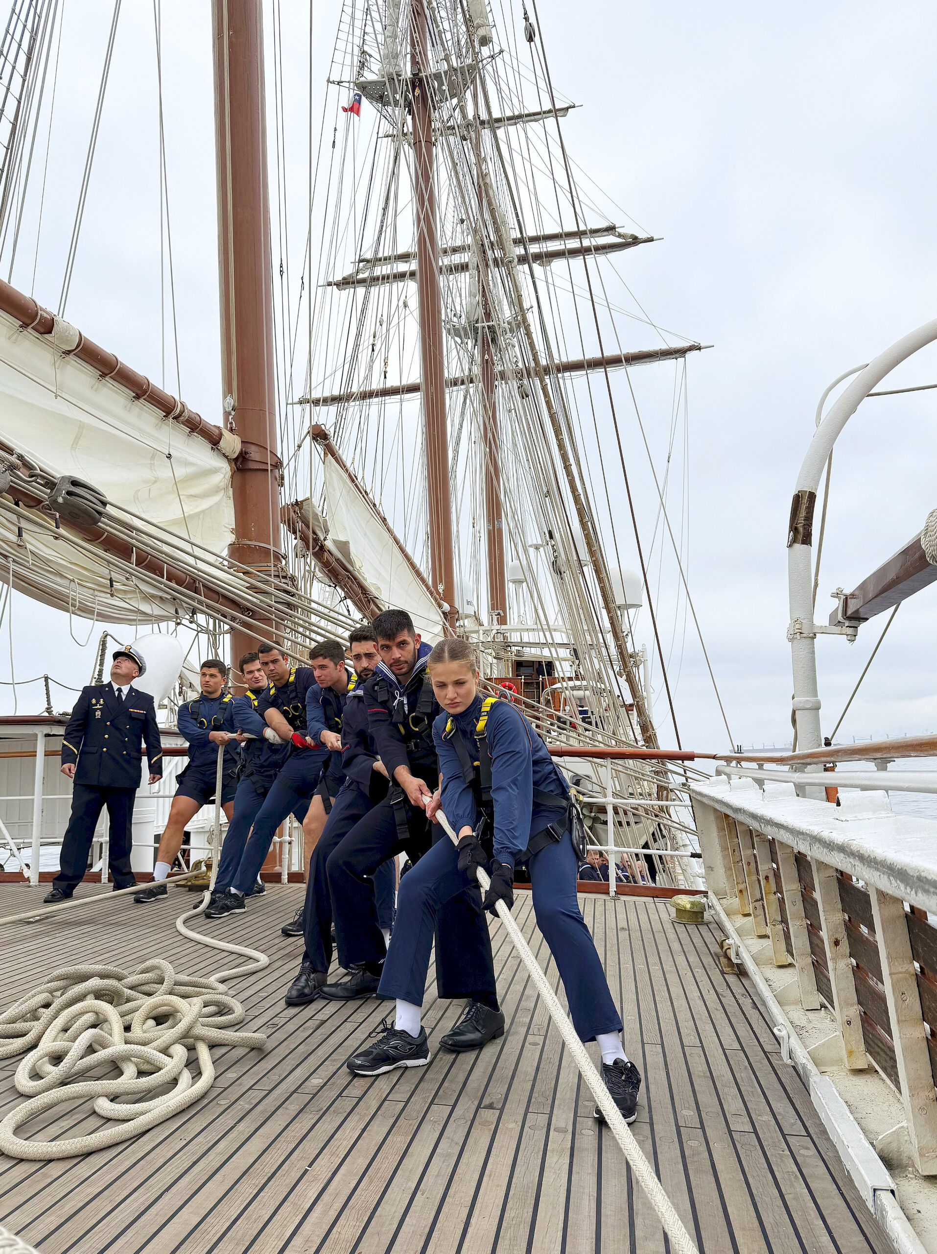 La Princesa Leonor continúa su formación naval como guardiamarina en el buque escuela Juan Sebastián Elcano, en el que embarcó el pasado 11 de enero y en el que navega ya rumbo a El Callao (Perú) tras visitar Chile.