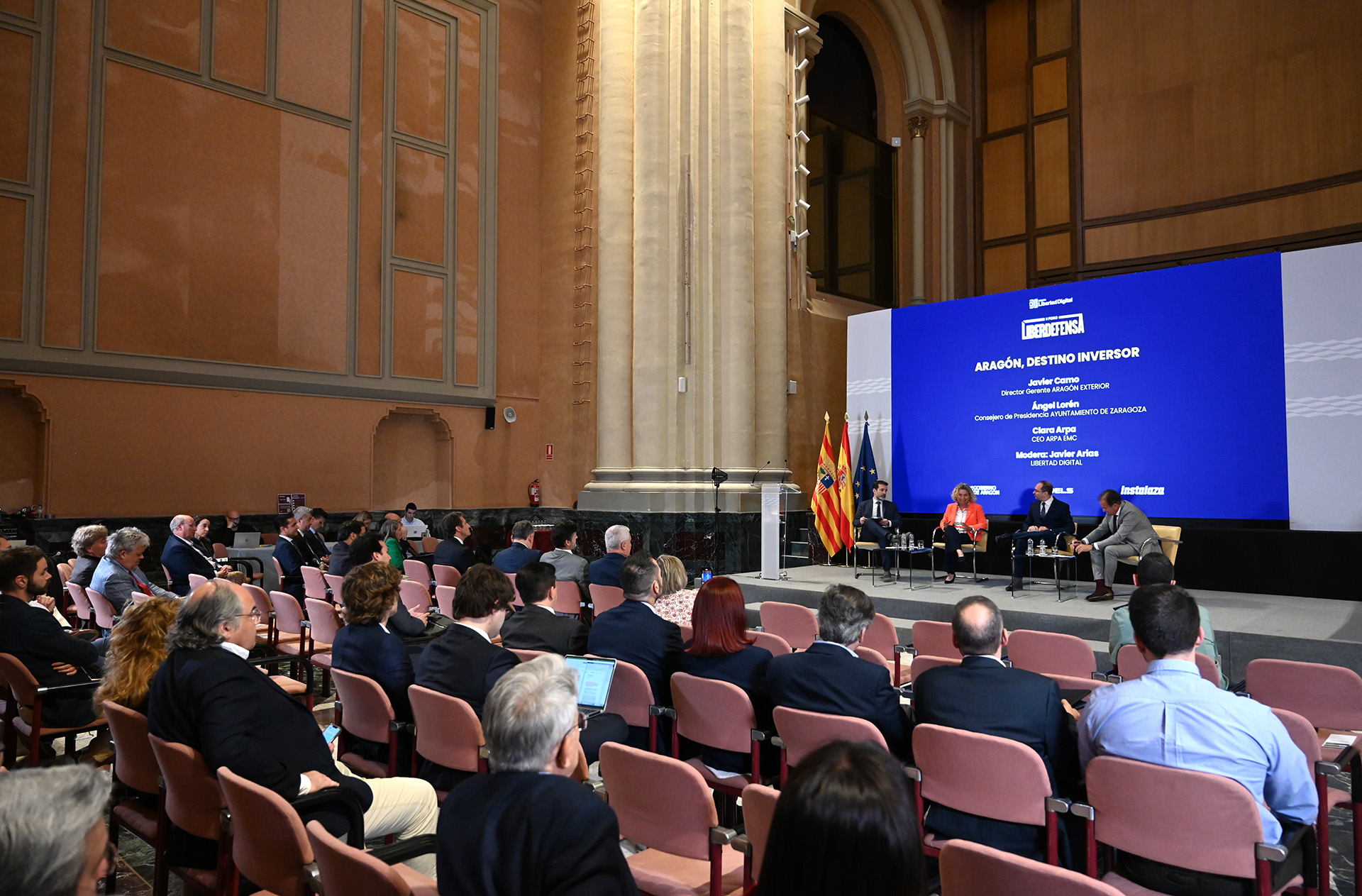 Participaron Javier Camo, Director Gerente ARAGÓN EXTERIOR, Ángel Lorén, Consejero de Presidencia AYUNTAMIENTO DE ZARAGOZA, Clara Arpa, CEO ARPA EMC, con la moderación de Javier Arias Borque.