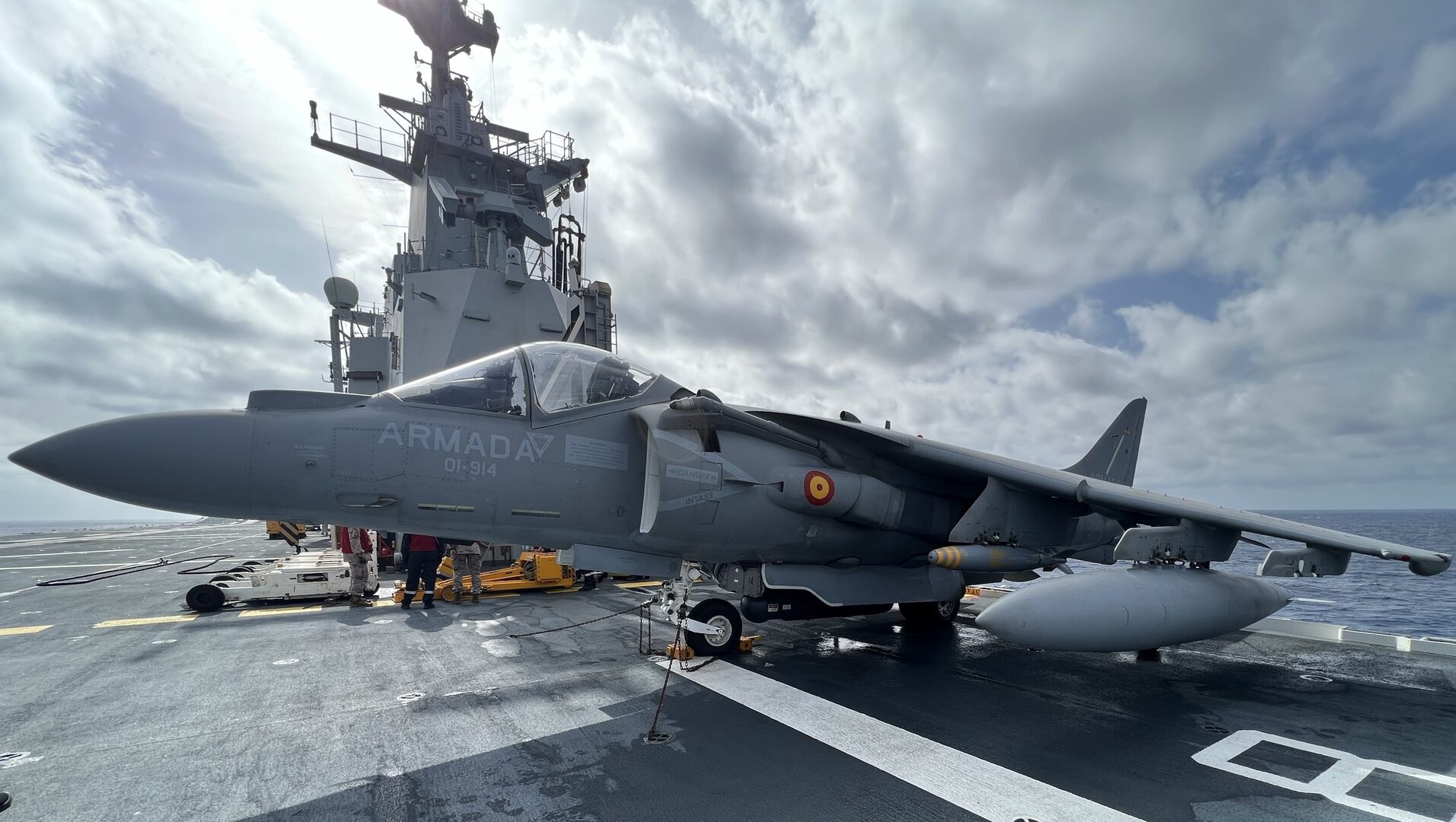 Precisamente el de las aeronaves embarcadas es el gran problema al que se enfrenta ahora mismo la Armada. Los Harrier AV-8B están llegando al final de su vida operativa. España, de hecho, es el único país que los mantiene operativos, prolongando su servicio más años de lo previsto inicialmente, aunque también es verdad que se ha venido beneficiando de las piezas utilizables que han ido dejando los países que lo tenían en activo.