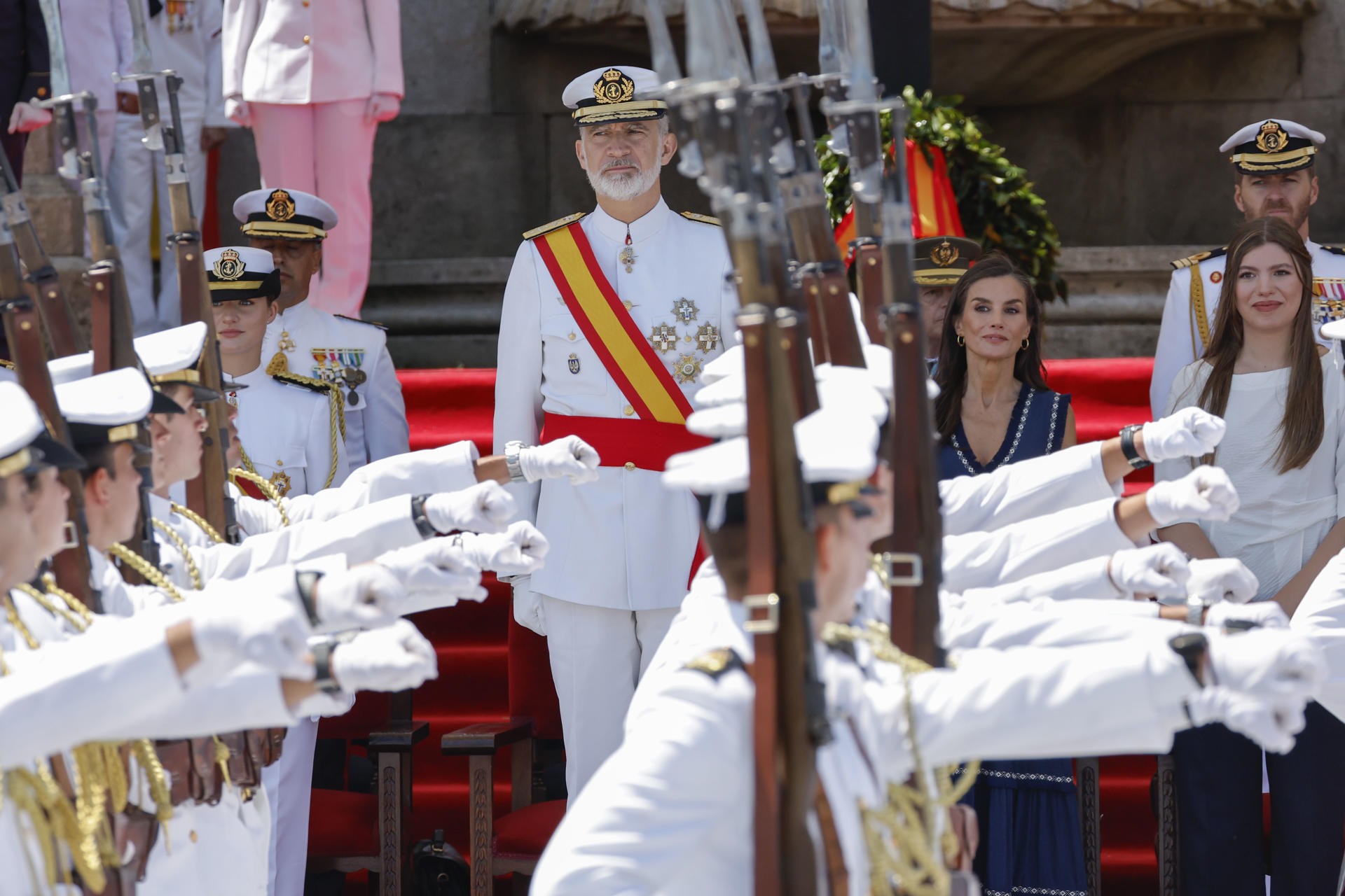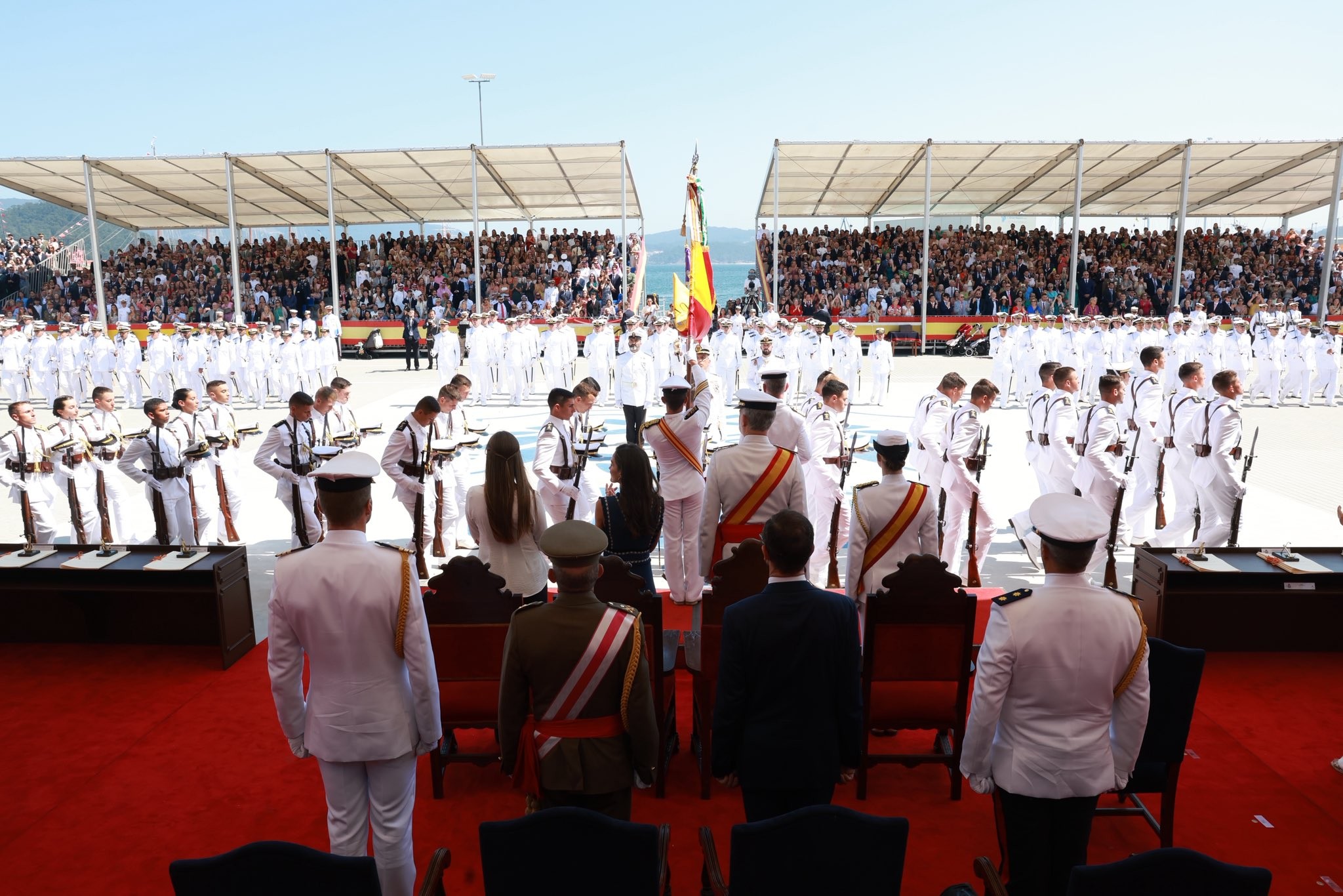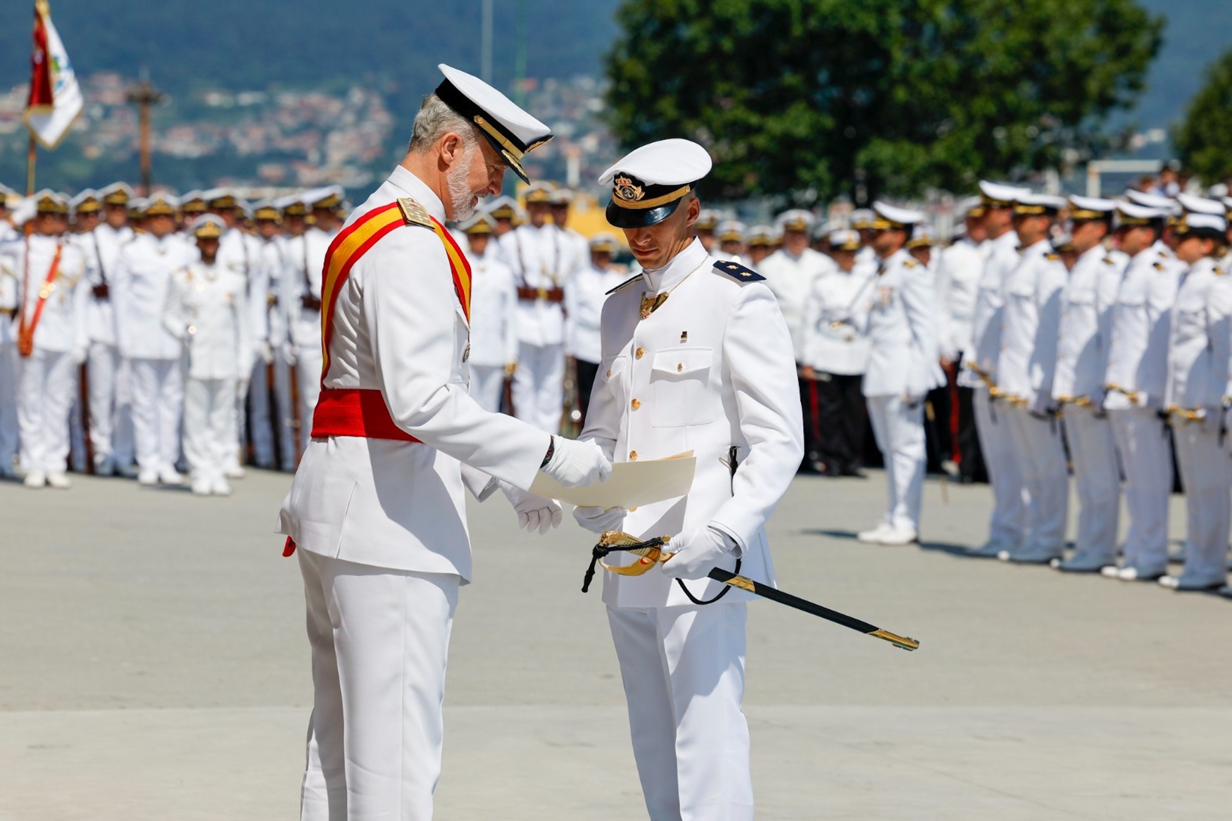 El Rey ha presidido la entrega de Reales Despachos en la Academia Naval Militar de Marín (Pontevedra). Un acto que este año ha estado marcado por la finalización de la Princesa de Asturias de su año de formación militar en la Armada.