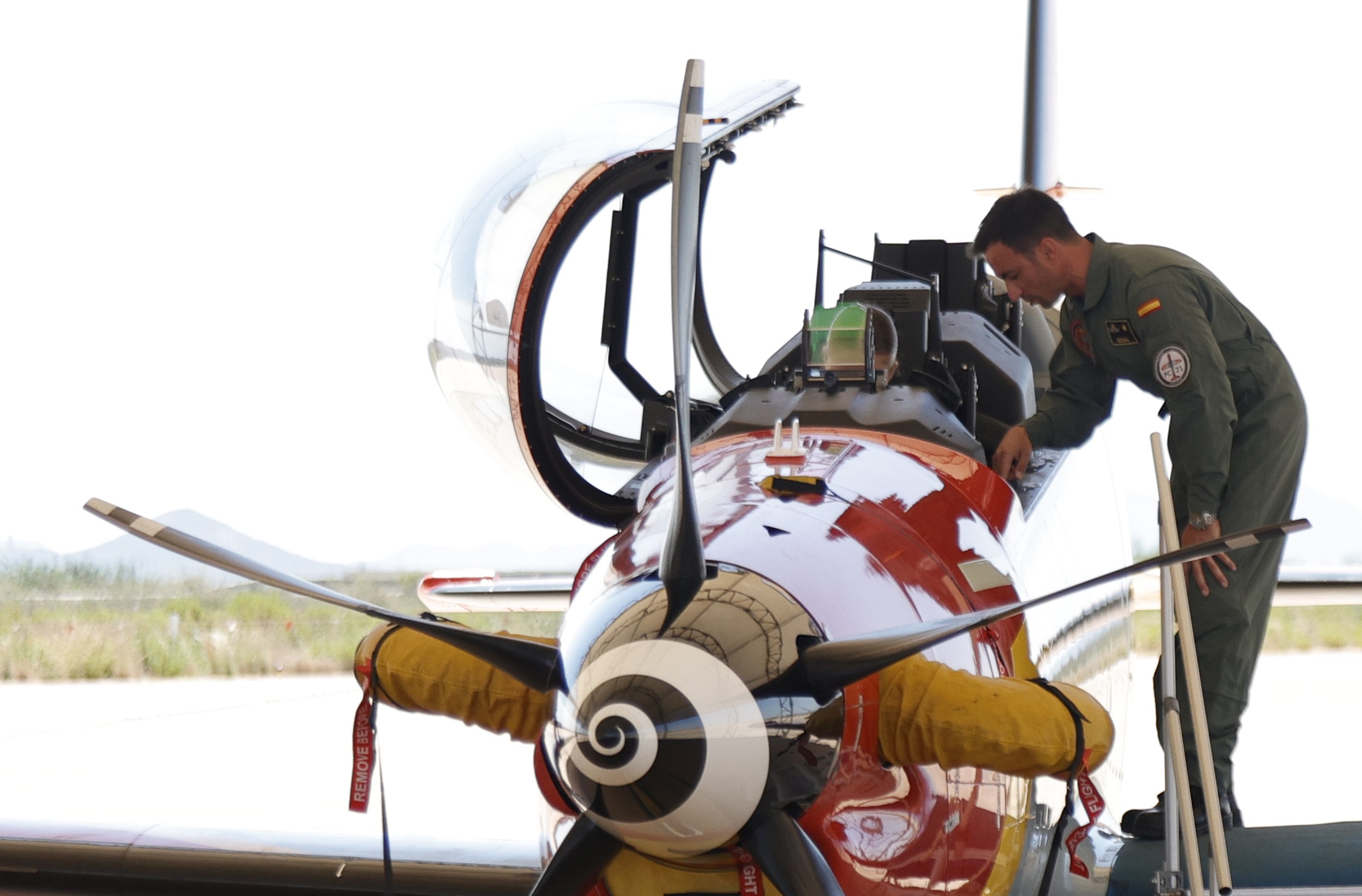 El Pilatus PC-21 se ha convertido este año en el adiestrador único de la AGA. Hace unos años empezó a sustituir a los míticos cazas C-101 y a partir del año pasado también sustituya a las veteranas T-35 Pillán.
