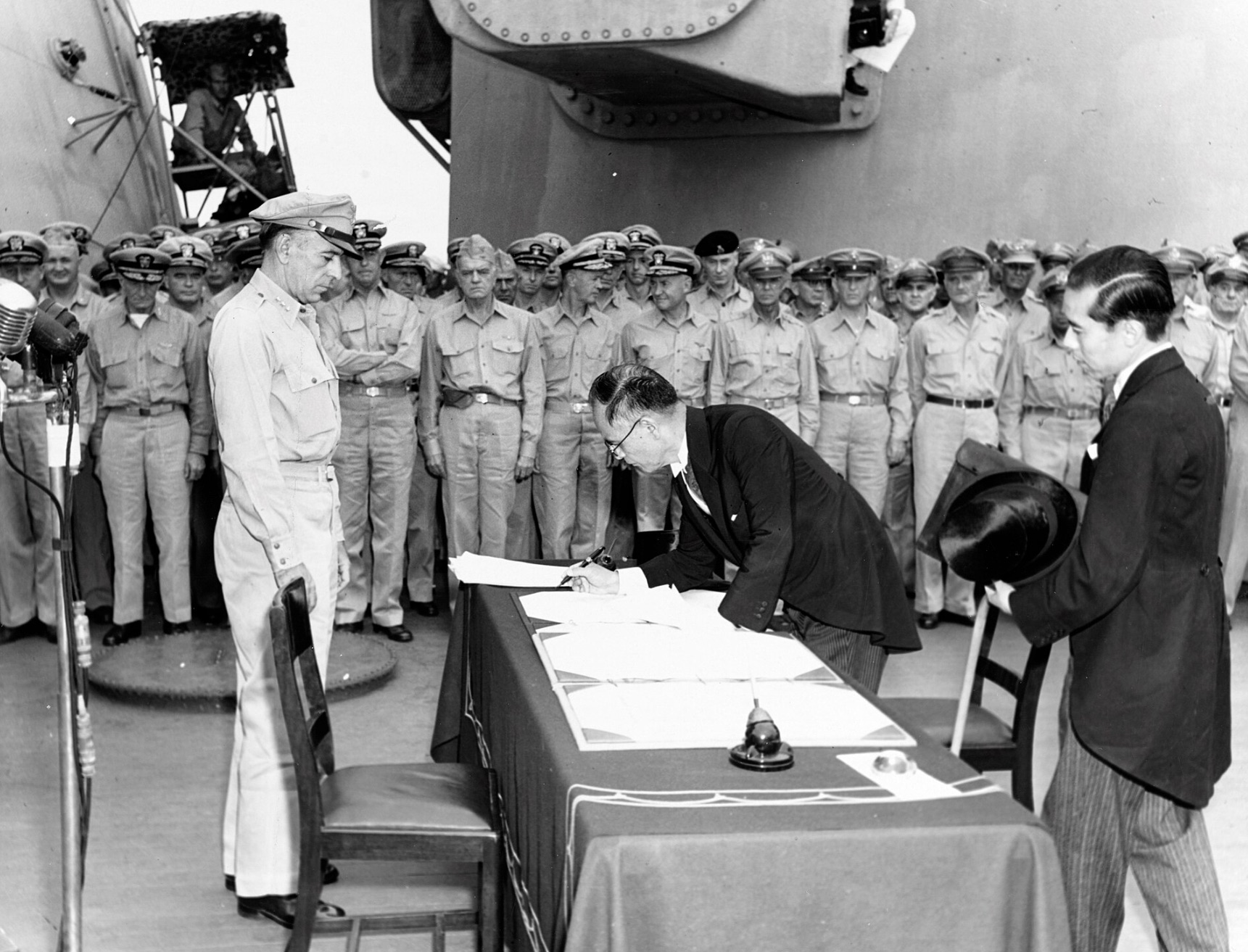 La firma del acta de rendición estuvo marcada por un ambiente solemne y tenso. Entre los firmantes se encontraban el ministro de Asuntos Exteriores japonés, Mamoru Shigemitsu, el jefe del Estado Mayor General japonés, Yoshijirō Umezu, y el general estadounidense Douglas MacArthur, comandante supremo de las fuerzas aliadas en el Pacífico. En apenas 23 minutos, se puso fin a seis años de guerra que dejaron un saldo de decenas de millones de muertos y la devastación de continentes enteros.