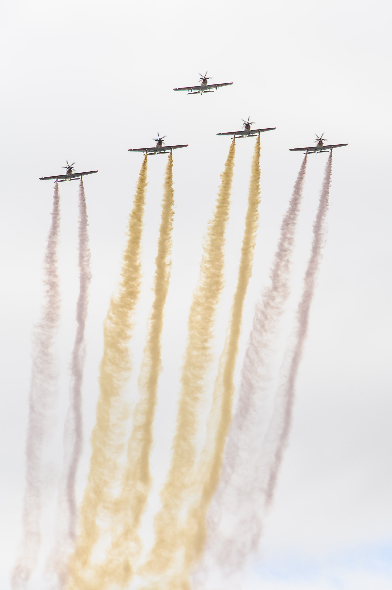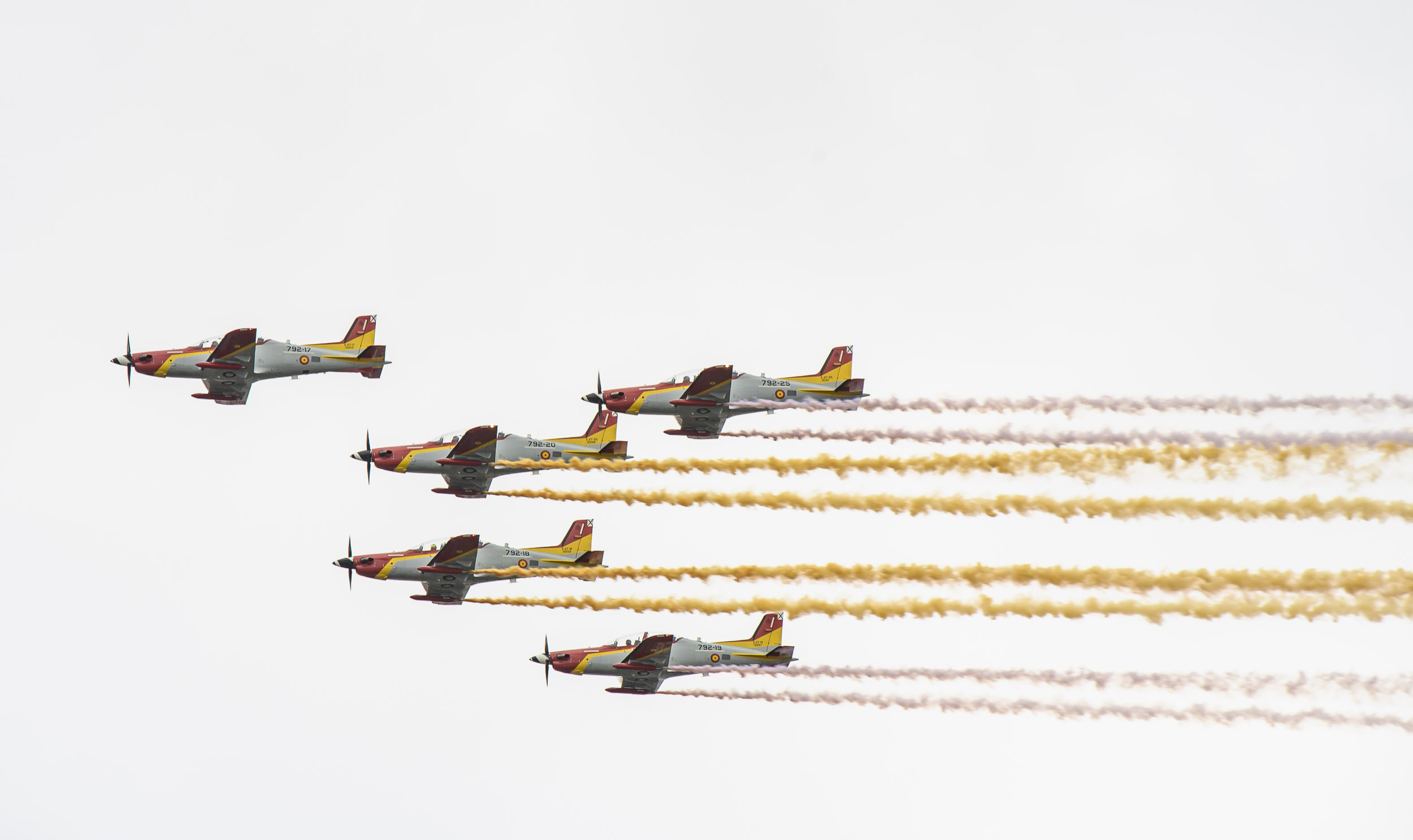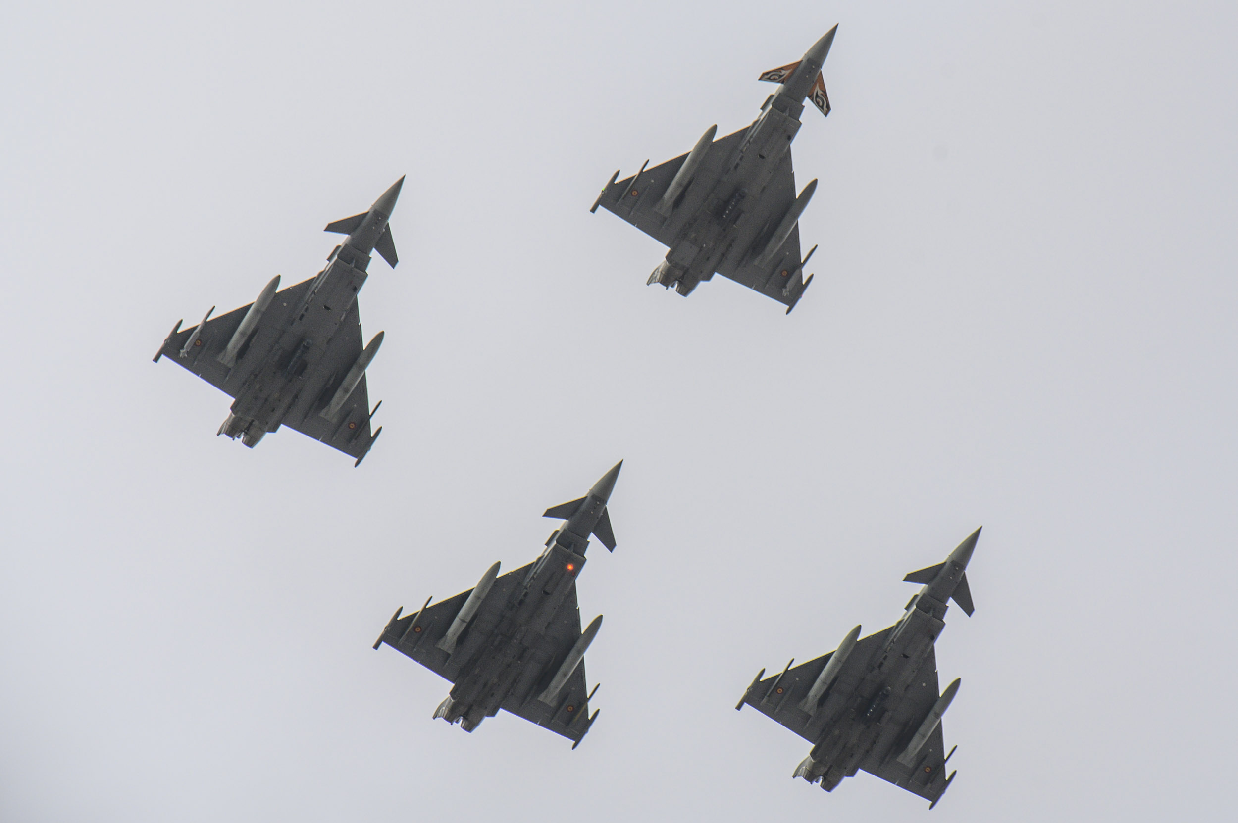 El desfile aéreo se ha reducido, pero si se ha podido ver este grupo de Eurofighter, uno de los aviones más avanzados del mundo.