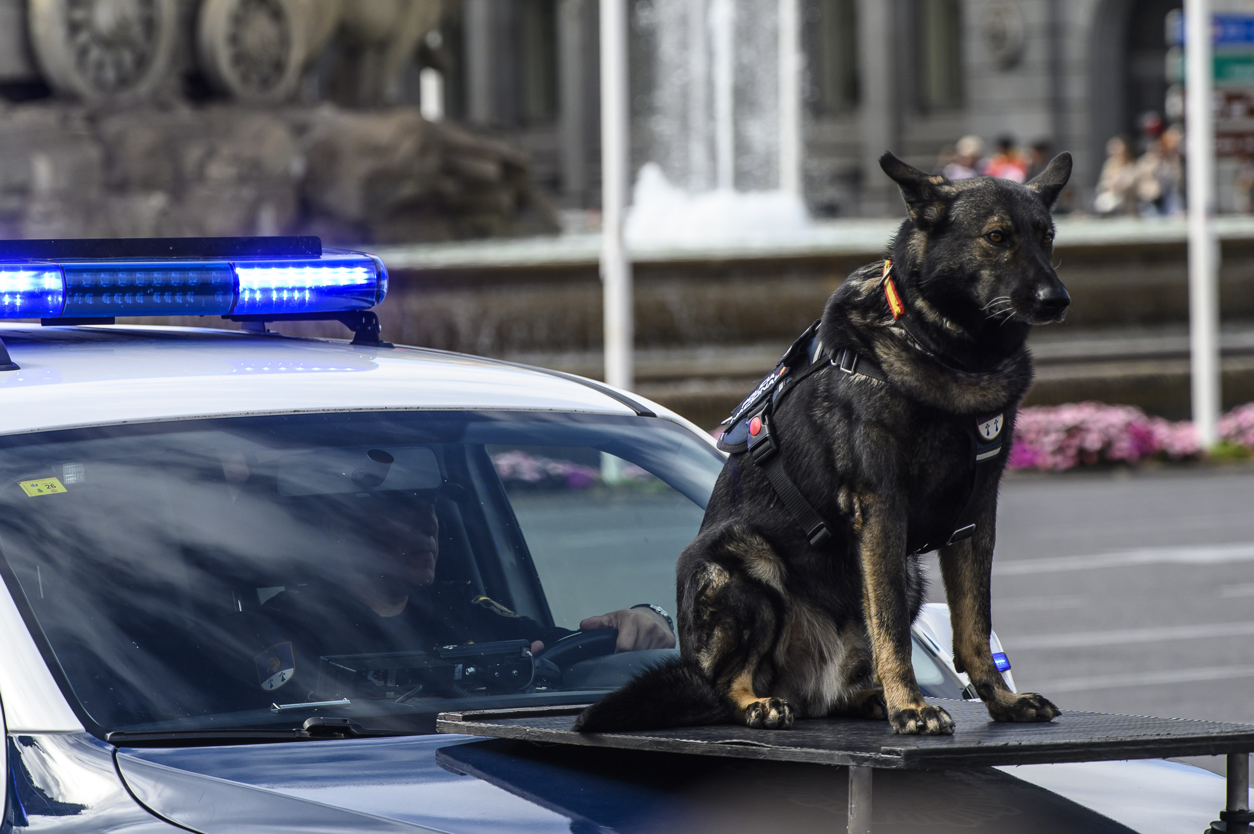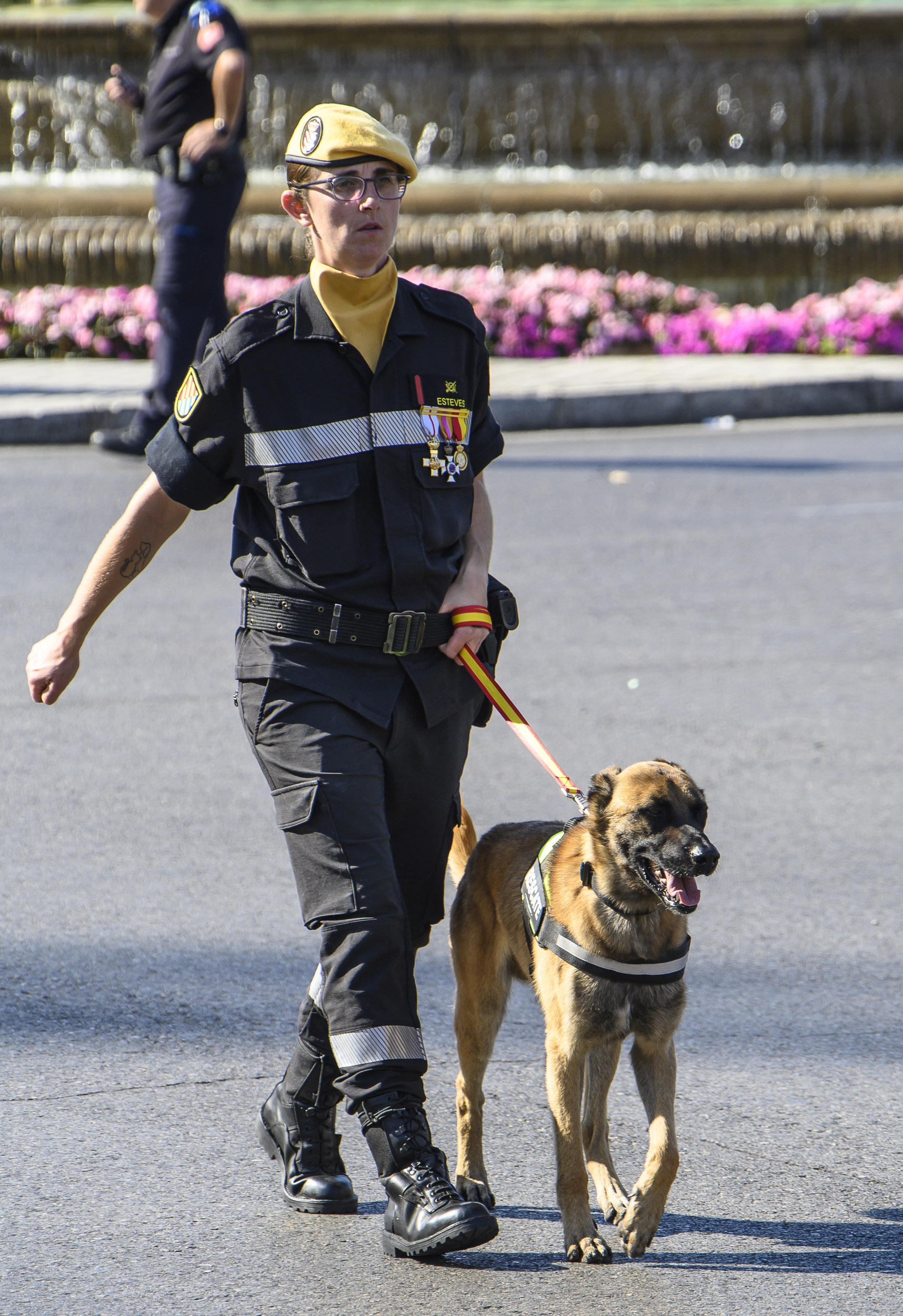 Uno de los elementos más curiosos del desfile: los miembros de la unidad canina de la Policía Nacional.