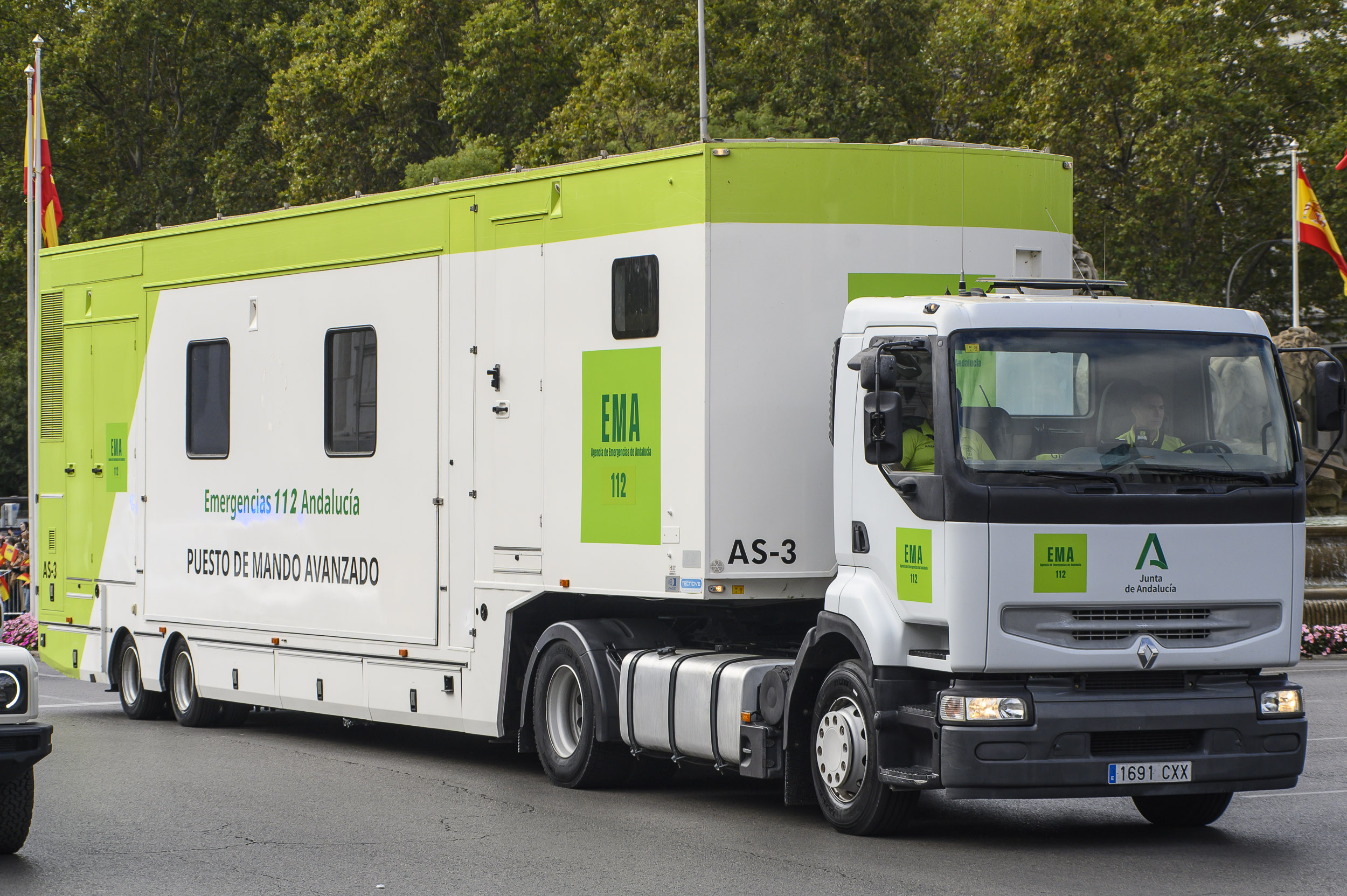 Otro elemento llamativo del desfile: un Puesto de Mando Avanzado de Emergencias de la Junta de Andalucía.