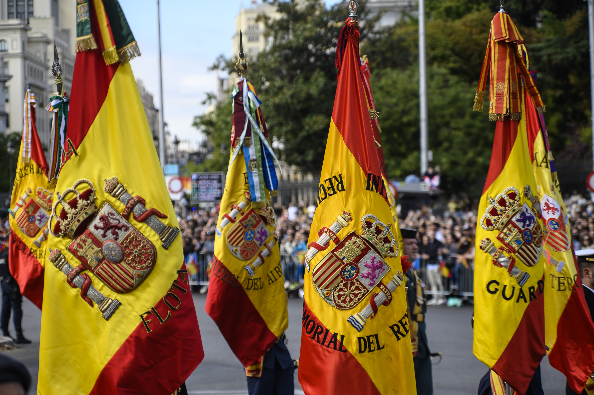 Banderas de distintas unidades de las Fuerzas Armadas que han participado en la parada militar.