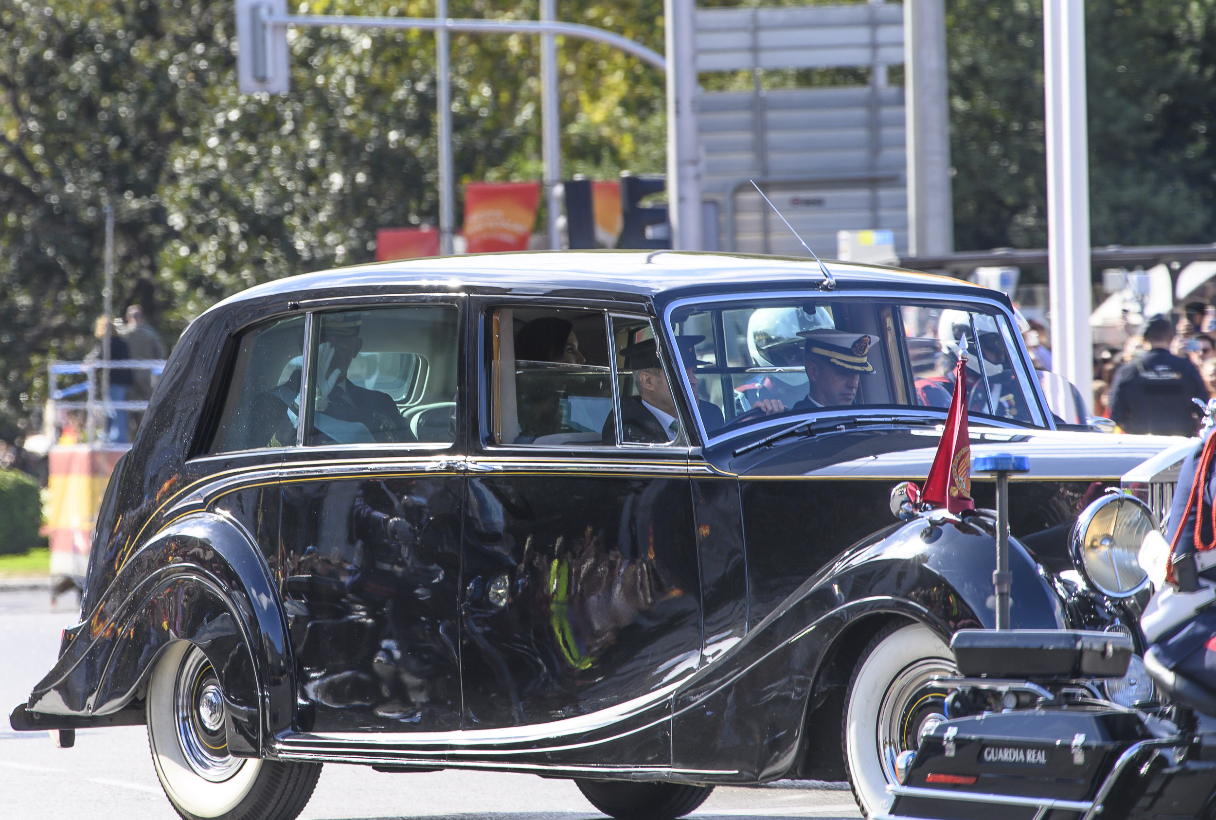 El Rolls Royce de la Casa Real con el Rey Felipe VI y la reina Letizia, cuando abandonaban el desfile.