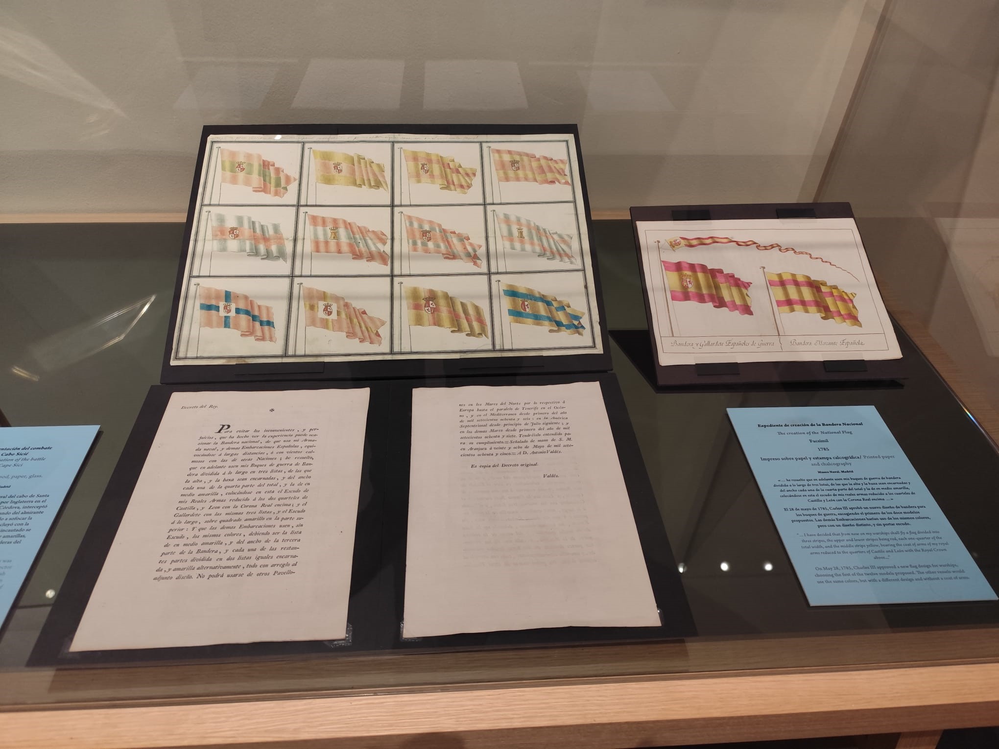 También láminas de las posibles banderas de España que se presentaron a Carlos III para la elección de la que finalmente sería aprobada en 1785, o la bandera del Batallón del Real Cuerpo de Artillería de Marina de 1846, así como diversos objetos como maquetas de épica, monedas o medallas, hasta alcanzar el número final de 57 piezas históricas que componen esta exposición.