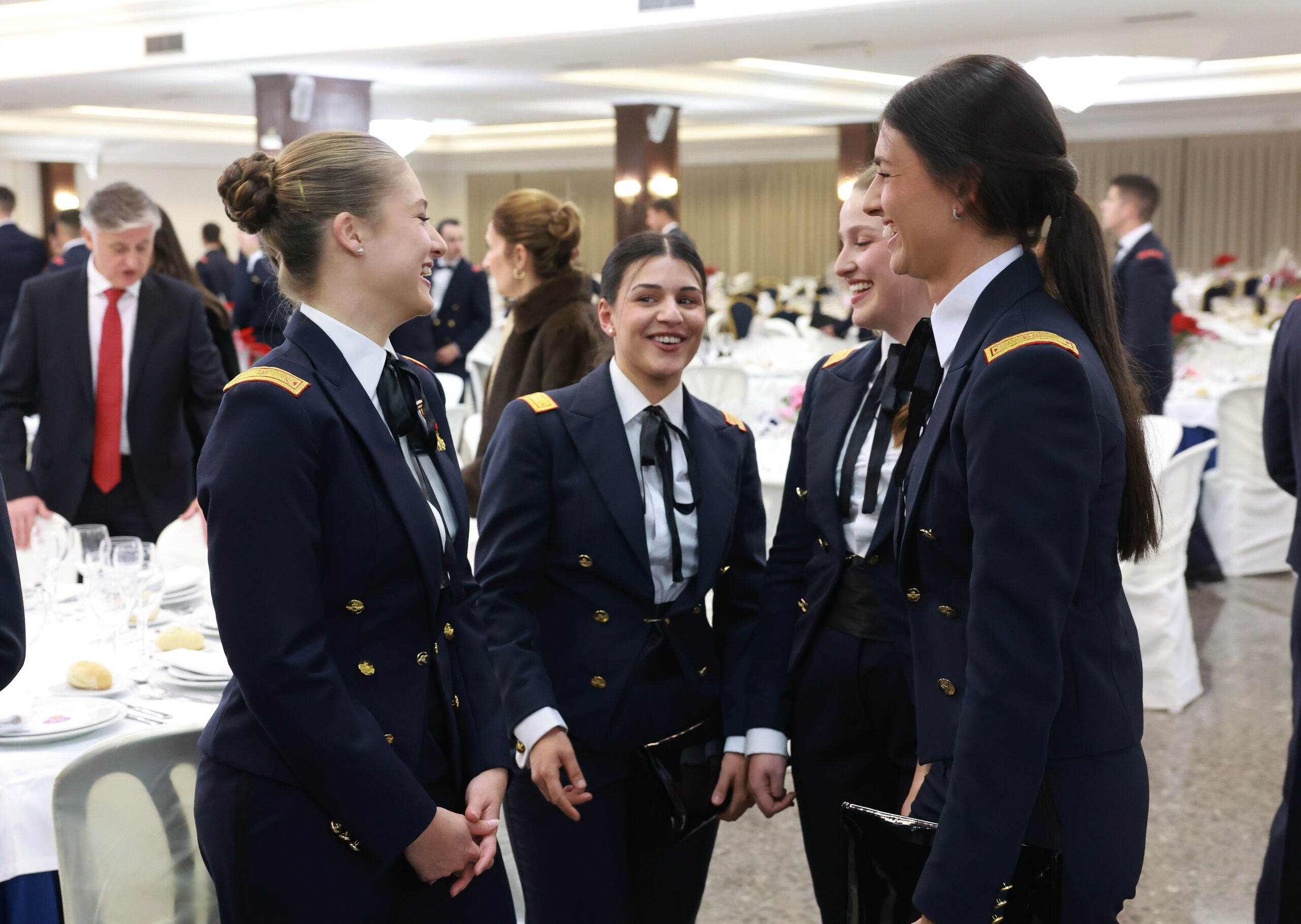 Leonor de Borbón charla con tres de sus compañeras durante la celebración de la patrona del Ejército del Aire y el Espacio.