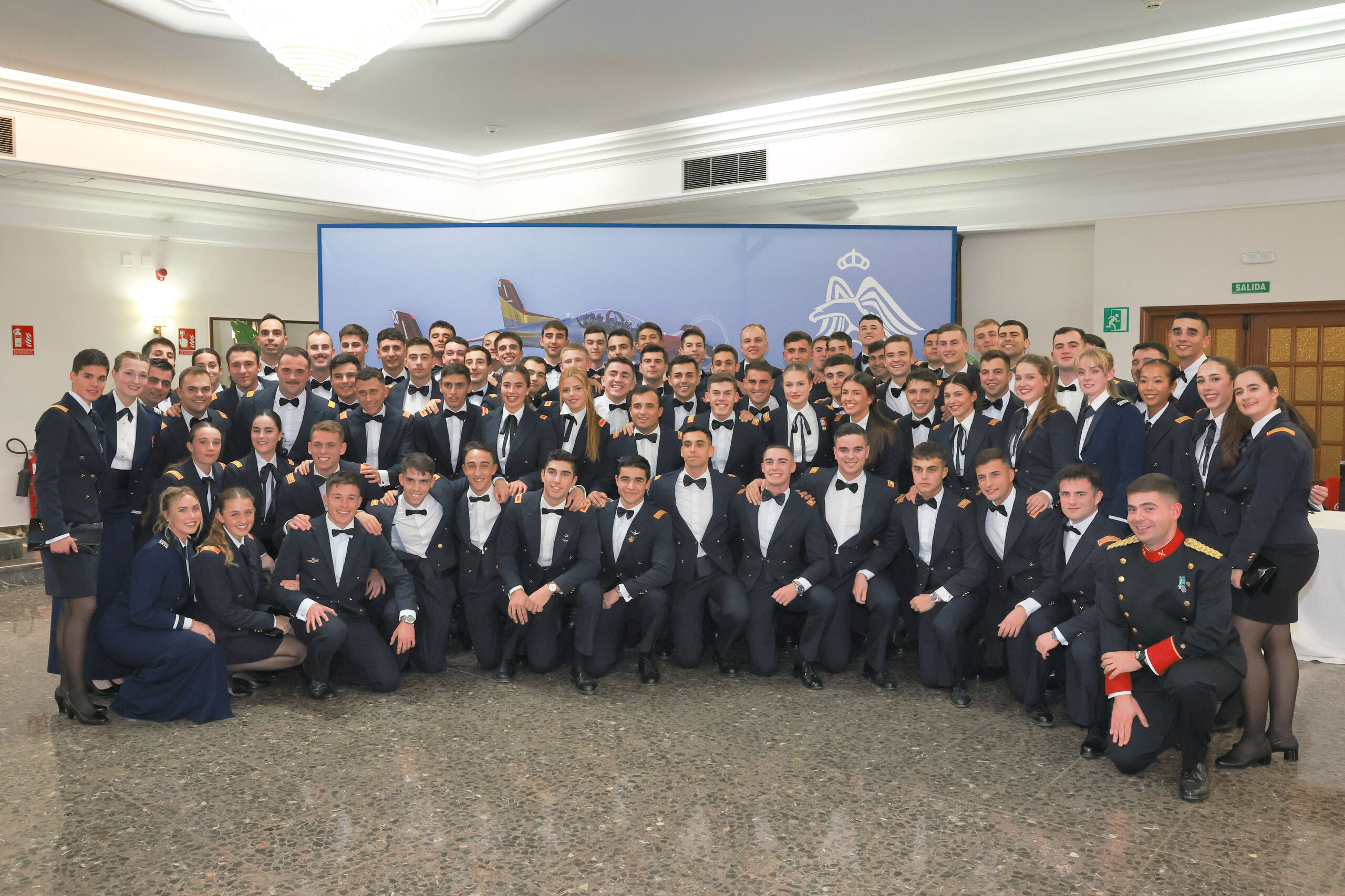 Foto de grupo de la cena de gala con motivo de la festividad de Nuestra Señora de Loreto en la Academia General del Aire y del Espacio (AGA).