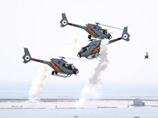 La conmemoración ha culminado con una exhibición aérea que ha sobrevolado Palos de la Frontera ante la mirada de cientos de asistentes. Han participado los miembros de la patrulla acrobática Aspa, compuesta por helicópteros EC-135 del Ejército del Aire, y los de la patrulla acróbática paracaidista (PAPEA). Una exhibición que el Monarca ha seguido con inusitado interés.