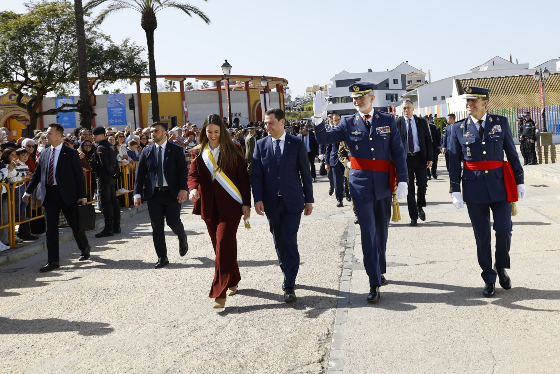 La jornada ha comenzado con la llegada de Don Felipe al Coso del Descubrimiento, donde ha recibido honores militares y ha pasado revista a la formación. A su llegada, numerosos vecinos se han congregado en las inmediaciones para saludarle, en un ambiente de respeto institucional y orgullo local. El Rey ha correspondido a las muestras de afecto antes de ocupar su lugar en la tribuna oficial.