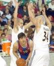 Poco a poco, casi sin notarlo, el aplomo que irradiaban los blancos fue cambiando de camiseta. Christian Drejer lo puso todo de golpe en manos del Barcelona con dos triples. El primero empató la contienda (59-59 m.28); el segundo la llevó al lado de los suyos (62-59). Era el momento de Bodiroga. El serbio comenzó a jugar un uno contra cinco como base. Sus características fintas, sus movimientos para hacerse huecos y tirar, en fin, todo el repertorio, entraron en escena, aunque sin terminar de inclinar la balanza, igualada a los pocos segundos de iniciarse el último cuarto con triple (63-63) de un Bennett intensamente vigilado que dejó para mejor ocasión las penetraciones.